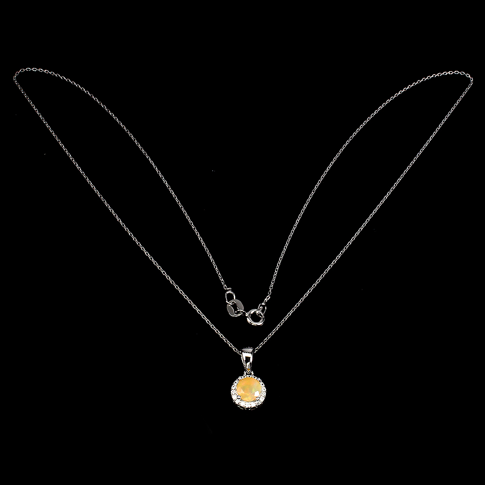 Unbeheizter runder Feueropal, 6 mm, künstlicher Cz, Halskette aus 925er Sterlingsilber, 45,7 cm