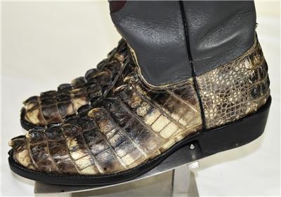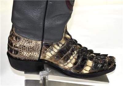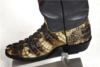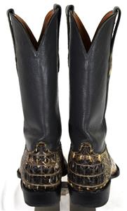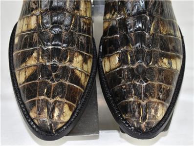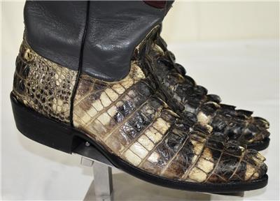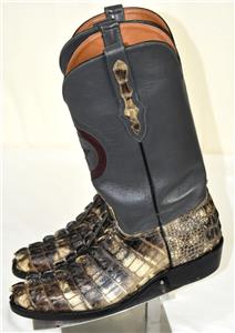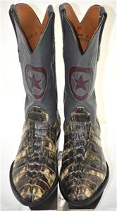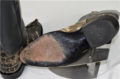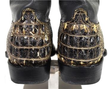 Here is a very nice pair of Black Jack cowboy boots. These are USA made with genuine American alligator uppers - tail cut. These boots are in overall excellent condition - gently worn and show great. See close up photos. They measure approx. 12 inches in total length and 4 1/4 inches across the widest part of the soles. The pictures do not do this item justice - these are a great pair of boots (shoe trees not included). B105 M25