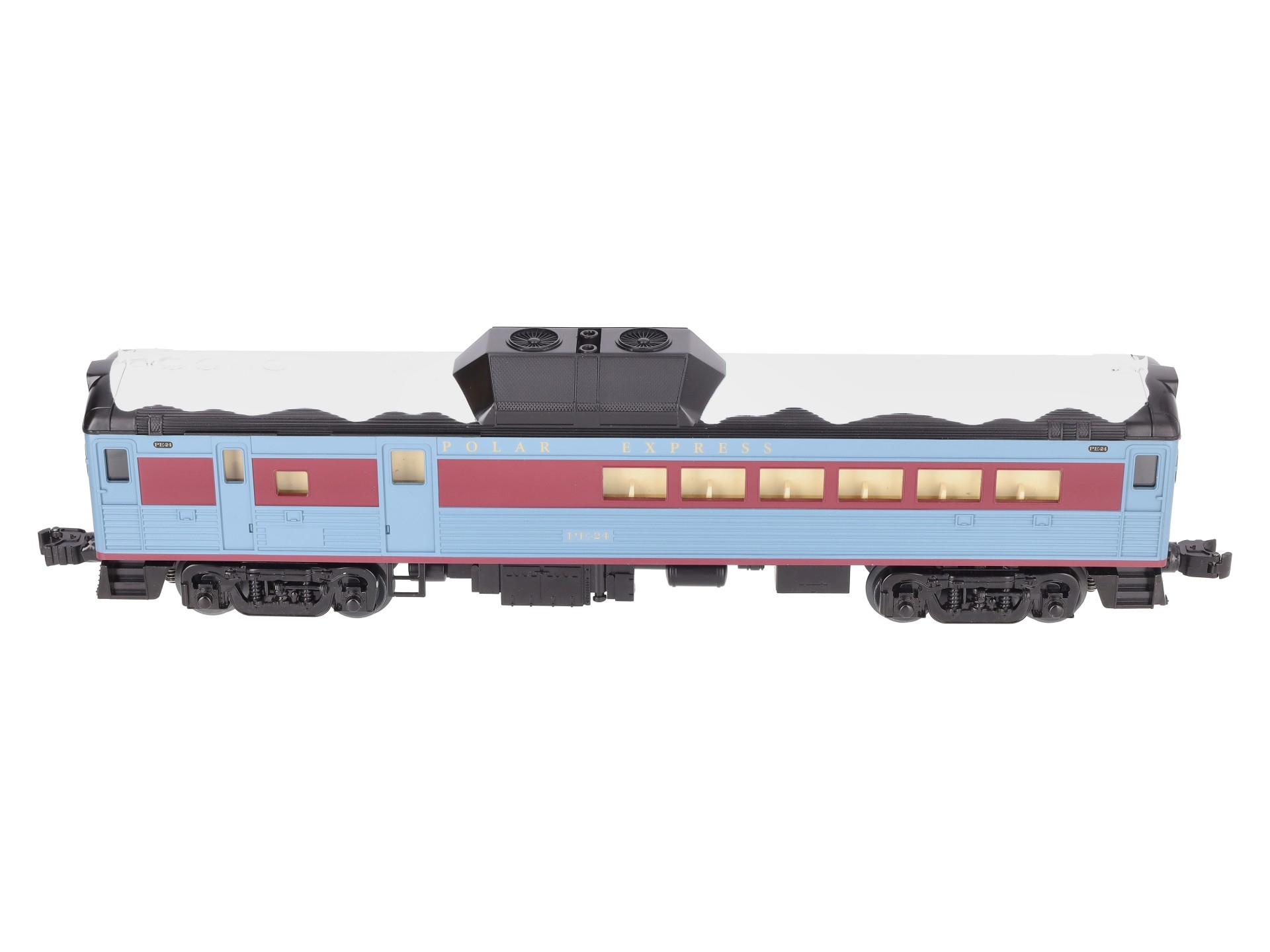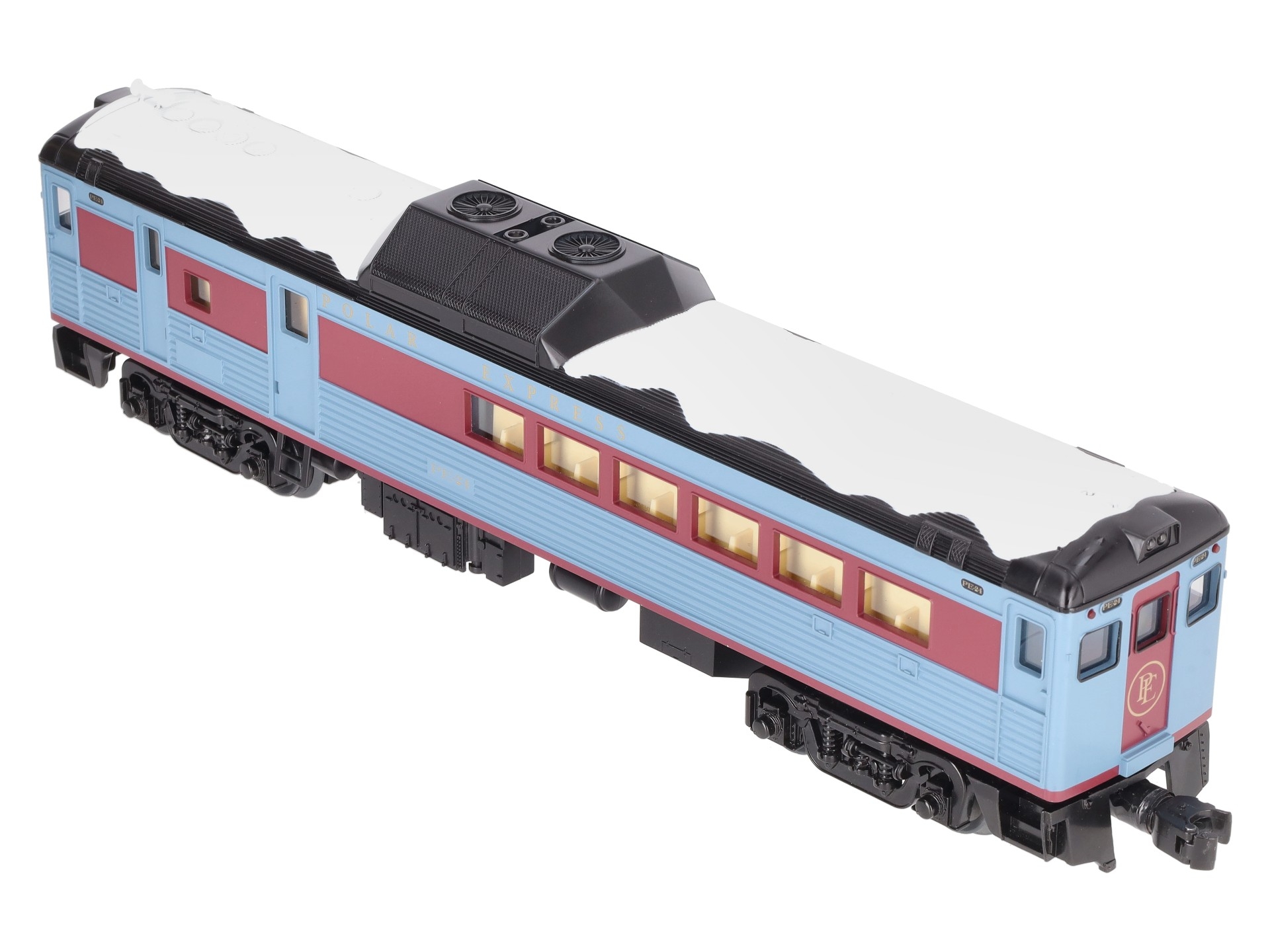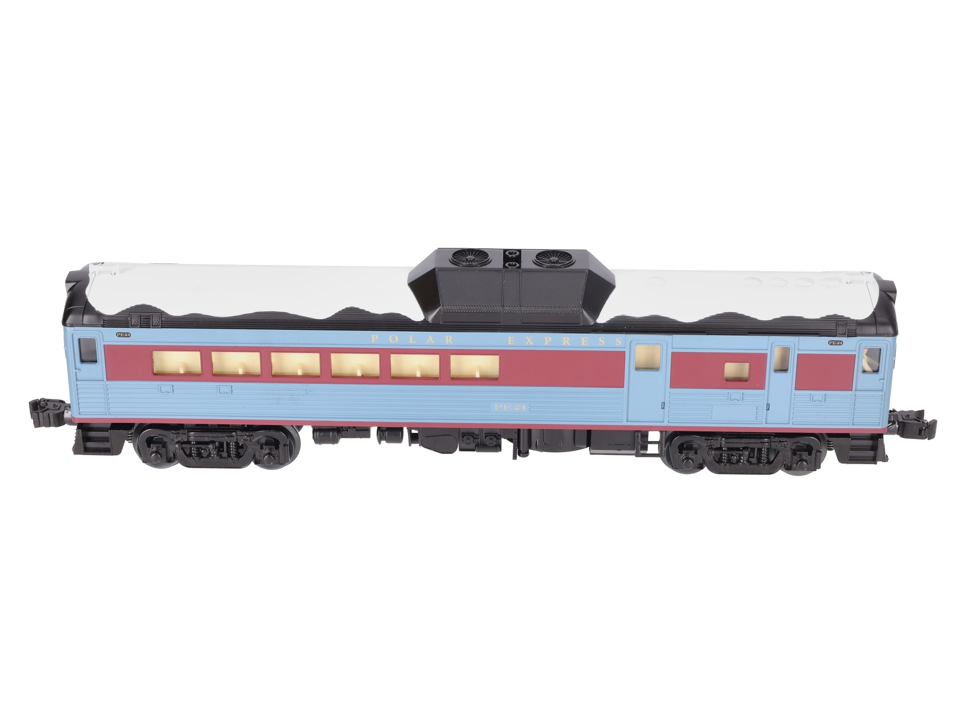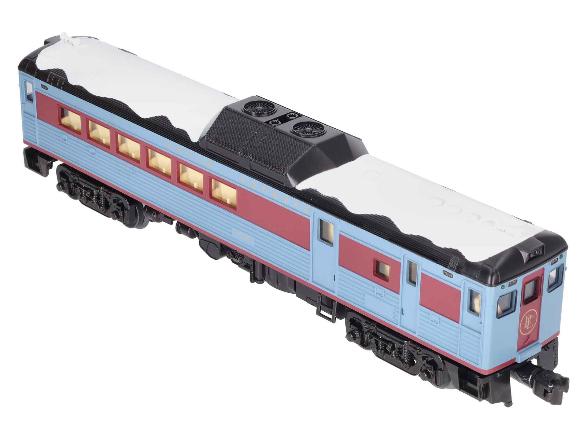 This is a Lionel 2335160 O Scale ""The Polar Express"" LionChief Plus 2.0 Budd RDC Diesel Locomotive #PE-24. Powered Unit features: Command Control equipped - Operate via Bluetooth using Universal Remote or LionChief App, Operate via Command Control using TMCC or LEGACY Cab, Operate via conventional transformer, Lash-up with similar LCC locomotives in Command Control, Speed control, Lionel Voice Control (LVC) - run your locomotive by speaking commands into your phone via LionChief App, Railsounds equipped ? Gasoline engine and background sounds, Horn, Bell, Crewtalk / Towercom dialog, Fan-driven smoke, On/Off switch for smoke and sound, Dual ElectroCouplers , Dual-powerful maintenance free motors, Die-cast trucks, pilot and fuel tank, Metal frame, Directional Headlights, Cab illumination, Cab Figure. Dimensions: Length: 32"" (16"" each).