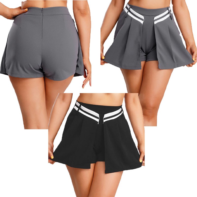 The college-style shorts with pleated and irregular overlay is trendy and unique, adding a fashionable touch to your outfit.
