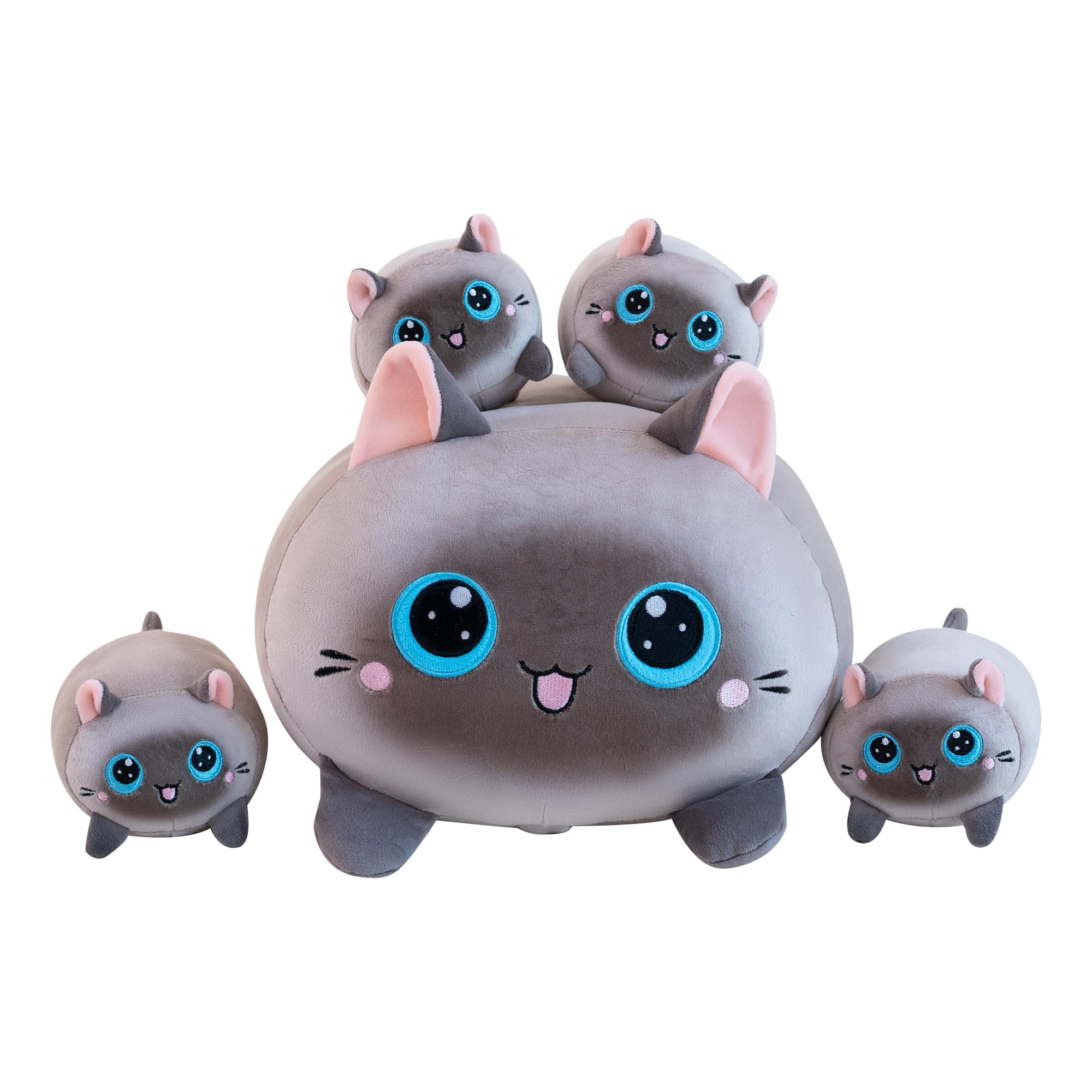5-Piece Cat Set: This plush cat set is perfect for children's creative play, from house play to pretend family play. Young children can experience the joy of creating their own stories. These plush toys provide unparalleled comfort and spark the imaginations of children of all ages. The joy of discovering the kittens hidden inside the pouch will create unforgettable excitement for children.