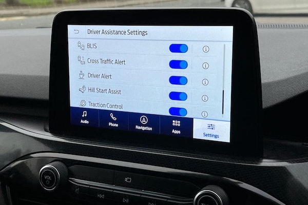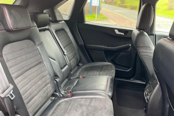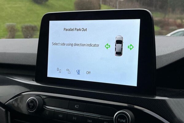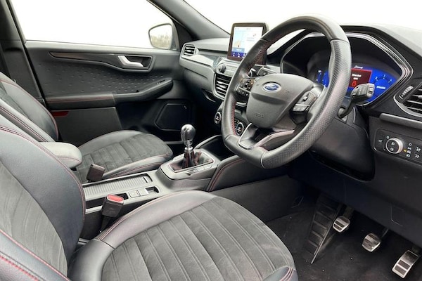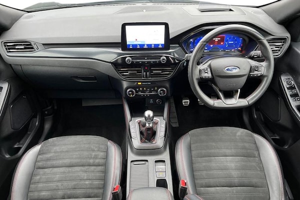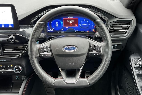 Active park assist, Adaptive cruise control (ACC) with traffic sign recognition, BLIS (Blind spot information system), Driver impairment monitor, Eco coaching, Ford easy fuel, Front and rear parking sensors, Front and rear view camera, Hands free power tailgate, Head up Display, Intelligent speed assist, Lane keeping aid with lane departure warning, Mobile phone wireless charging pad, Power assist steering, Selectable drive modes, SYNC 3 with navigation, DAB audio, Auto dimming rear view mirror, Auto headlamps with high and low beam, Auto wipers, Black roof rails, Door edge guards, Electrically operated front and rear windows, Front LED fog lights with cornering function, Full LED quad projector headlamps with glare free, Large rear spoiler, LED daytime running lights, LED rear lights, Power folding heated door mirrors with puddle lights, Power front/rear windows with global close, Privacy glass, Quickclear heated windscreen, ST Line badges in exterior and interior, ST Line front scuff plates, Twin exhausts, 2nd row sliding seats, 8 way manual passenger seat including lumbar support and height adjust, Alloy pedals, Ambient lighting, Centre console with electronic parking brake, Dark headlining and pillars, Dual electronic automatic temperature control, Flat bottomed leather steering wheel in sensico with red stitching, Front and rear head restraints, Partial leather manual track seat, Rear charging point, Sensico partial premium leather upholstery, Sports seats, ST Line front