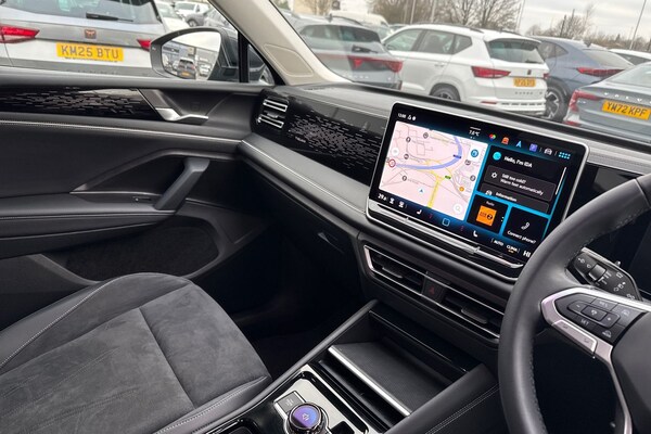 Step into style and sophistication with this Volkswagen Tiguan 1.5 eTSI 150 Elegance, finished in striking Dolphin Grey Metallic. Designed for both city streets and longer journeys, it features 19"" Catania black diamond-turned alloy wheels and a sleek, contemporary profile that exudes confidence. Inside, the cabin offers a premium and comfortable experience with Soul Black interior, high-quality finishes, and thoughtful touches for everyday convenience. Technology keeps you connected and entertained with the Discover Media navigation system, streaming and internet connectivity, wireless smartphone charging, USB-C ports front and rear, and IDA voice assistant, ensuring seamless control and entertainment on every journey. Parking and manoeuvring are effortless thanks to the Area View and Rear View Camera, while Lane Assist, Travel Assist, and Emergency Assist provide advanced driver support. Comfort features include a supportive cabin with intuitive controls, while safety is uncompromised with Adaptive Cruise Control (ACC), Front Assist with pedestrian and cyclist monitoring, Dynamic Road Sign Display, Predictive Speed Limiter, and a full suite of airbags, including side and curtain protection. Additional systems such as Side Assist, Rear Traffic Alert, Front Cross Traffic Assist, and ISOFIX child seat anchors enhance safety for every passenger. With a combination of style, technology, and advanced safety features, this Tiguan 1.5 eTSI 150 Elegance is the perfect SUV for mod...