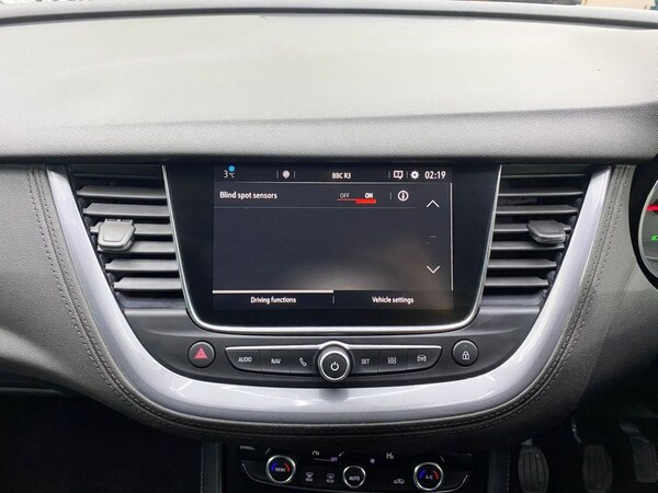 This 2019 Vauxhall Grandland X Turbo Sport Nav boasts an MOT valid until October 2026, offering you peace of mind for years to come. This Euro 6 compliant 1.2 litre petrol model comes in the Sport Nav trim, featuring Electronic Climate Control with air conditioning for your comfort. Navigating tight spots is made easier with the Park and Go Pack One, which includes front and rear parking sensors. The vehicle also benefits from Automatic Lighting Control and the Sight and Light Pack, ensuring your headlights turn on automatically when needed. For added safety, it is equipped with Side Blind Spot Alert. The Vauxhall Grandland X Turbo Sport Nav is designed to be a practical and efficient choice. Its low CO2 emissions and classification in a low insurance group indicate it is more economical to run than many similar vehicles. Youll also appreciate the generous boot space, perfect for luggage or shopping. Performance is brisk, with acceleration from 0 to 60mph achieved in just 9.5 seconds, demonstrating its capability for everyday driving. Welcome to MotorTrustUK, where exceptional standards and customer satisfaction are at the forefront of our service. All of our retail vehicles undergo a rigorous 128-point mechanical inspection, independently carried out by a qualified AA technician, to ensure the highest level of reliability and safety. Should any vehicle have less than six months remaining on its MOT or be due a service, these requirements will be addressed prior to delivery. For added reassurance, we include a complimentary nationwide warranty with all qualifying vehicles. With approximately 1,500 vehicles currently in group stock, a number that continues to grow, we are pleased to offer part exchange services, accept all major credit and debit cards, and provide flexible finance options, including HP, PCP, and subprime solutions. Nationwide delivery can also be arranged by quotation. While every effort is made to ensure accuracy in vehicle specifications and descriptions, details may vary; we encourage all customers to speak with a member of our sales team to confirm key information such as MPG figures, available keys, or any factory modifications. To ensure smooth processing and support, an administrative fee is applied to all completed sales. We look forward to assisting you in finding your next vehicle with confidence at MotorTrustUK. .Harlekin Fabric - Black, Diamond Black, 12V Electrical Accessory Socket, 18in Alloy Wheels - Five Spoke Diamond-Cut - Technical Grey, 220V Rear Power Outlet Behind Front Seats, ABS - Anti Lock Brakes, Airbags - Front Seat Side-Impact, Alloy Effect Protective Front and Rear Skid Plates, Ambient Centre Console Downlighter, Ambient Lighting in Front Doors, Anti-Submarining Ramps in Front Seats, Automatic Lighting Control, Automatically Dimming Anti-Dazzle Rear-View Mirror, Black Door Panels with Black Premium Leather-Effect Inserts, Black Door Panels with Medium Atmosphere Premium Leather-Effect Inserts, Black Roof and Door Mirrors, Body Colour Door Mirrors, Body Coloured Door Handles, CSC - Corner Stability Control, Central Facia Display, Centre Rear Seat Head Restraint, Child Proof Locks on Rear Doors, Chrome Effect Front Grille Bar, Chrome Effect Interior Door Handles, Chrome Effect Side Window Upper Trim, Collapsible Windscreen Wiper System, Covered Storage Compartment in Centre Console and Drivers Armrest, Cruise Control with Speed Limiter and Intelligent Speed Adaptation, Deactivation Switch For Front Passengers Front and Side Impact Airbags, Deformation Zones Front and Rear, Door to Door Illumination, Driver Information Display, Drivers Centre Armrest, Drivers and Front Passengers Airbags, Drivers and Front Passengers Sunvisors with Illuminated Vanity Mirrors, Dual Seatbelt Pretensioners on Front Seats, EBD - Electronic Brakeforce Distribution, Electric Parking Brake, Electrically Operated Front and Rear Windows with Safety Autoreverse and One-Touch Facility, Electronic Climate Control including Air Conditioning, Electronically Protected Audio Equipment, Energy Absorbing Steering Column, Engine Deadlock Immobiliser, Engine Drag Torque Control, Ergonomic Active Front Seats - AGR-Approved - Campaign for Healthier Backs is an independent centre of excellence for ergonomics based in Germany, Four Adjustable Facia Vents, Front Door Pockets with 2.6litre Capacity, Front Door Sill Covers - Alloy-Effect, Front Fog Lights, Front and Rear Passengers Assist Handles, Fuel Gauge with Low Fuel Warning Light, Full Size Curtain Airbags for Driver - Front Passenger and Outer Rear Seat Passengers, Fully Carpeted Luggage Area, Gloss Black B-Pillars, Halogen Headlights with Manual Beam Levelling and High Beam Assist, Hazard Warning Lights, Heated Rear Screen with Timed Cut-Off, Height Adjustable Front Seat Head Restraints, Height Adjustable Rear Seat Head Restraints, Heig