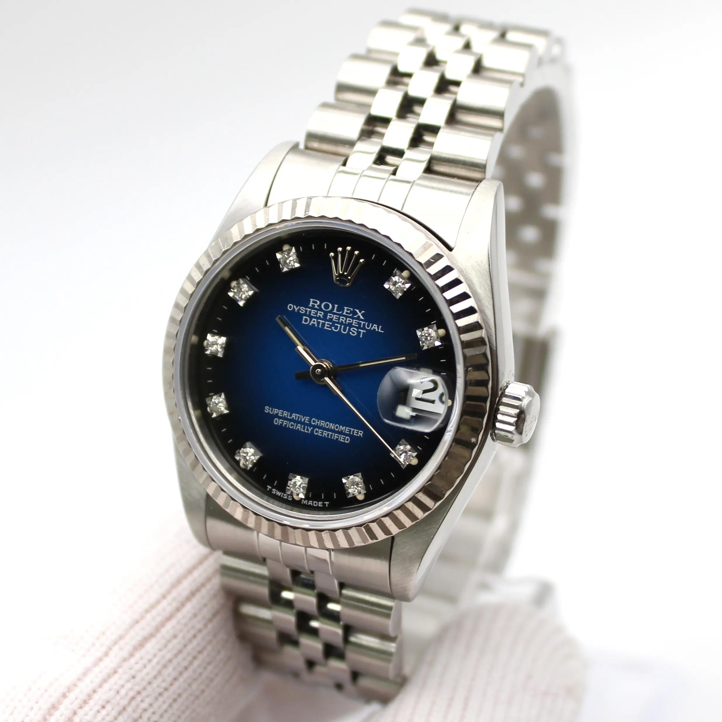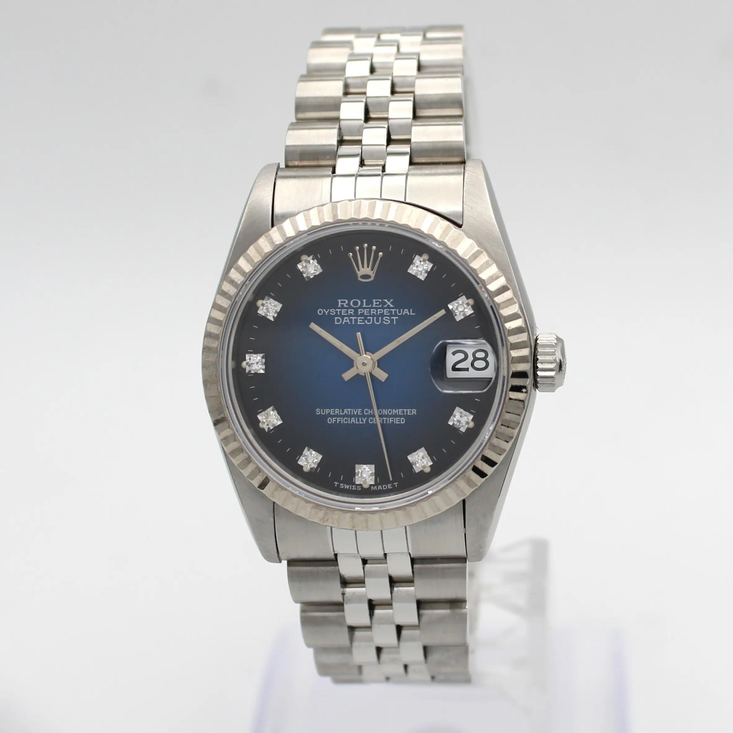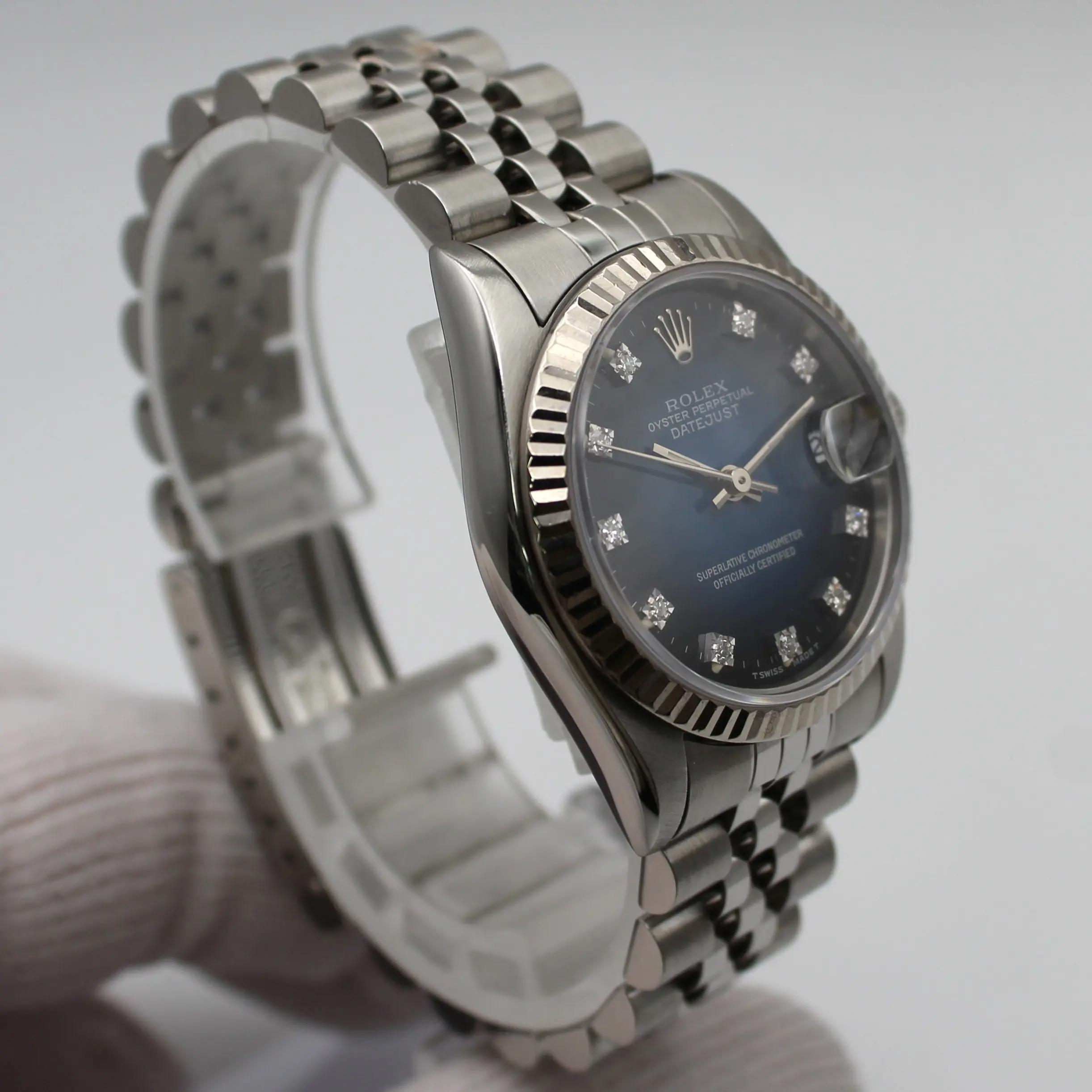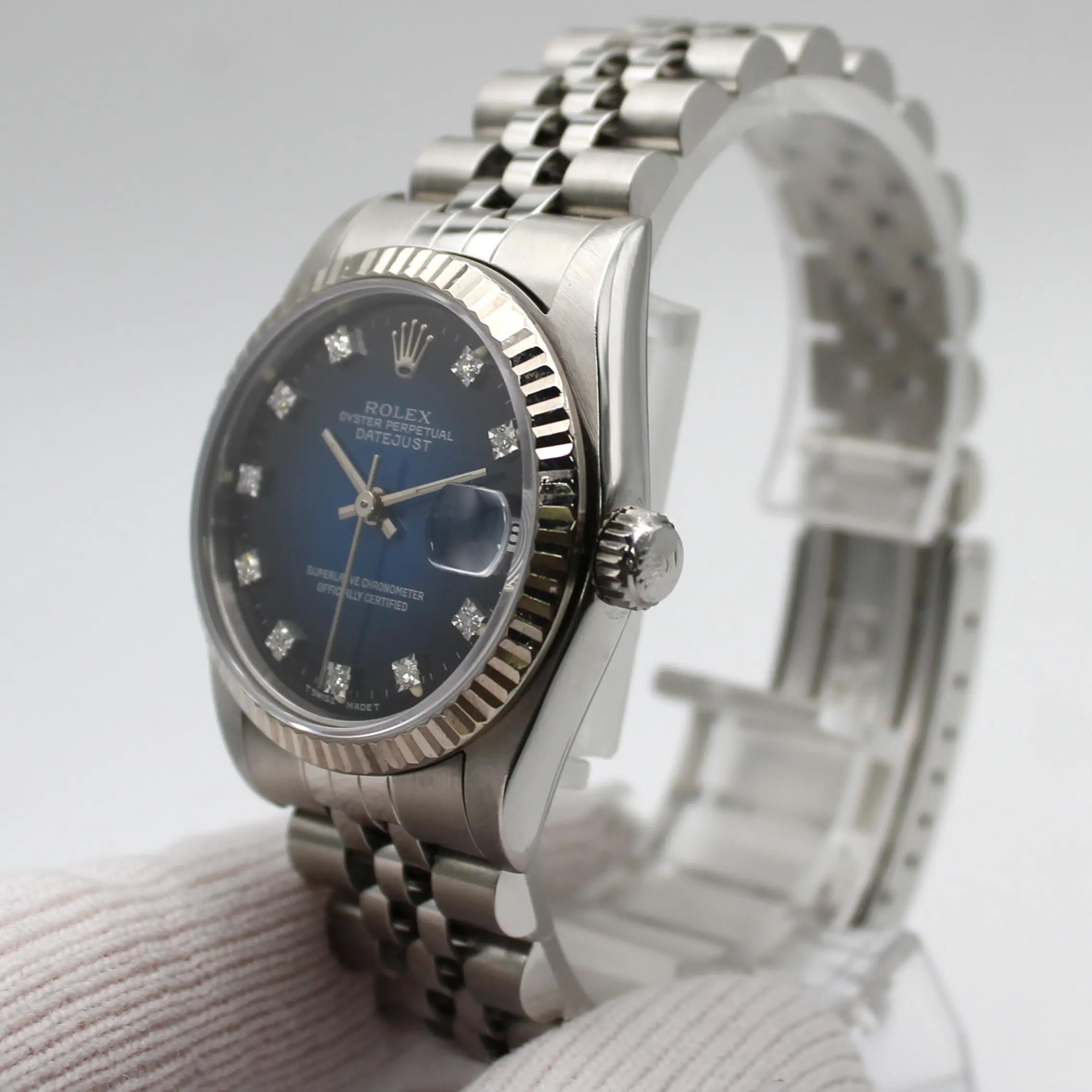 Rolex Datejust 31mm Midsize 18K White Gold Steel Blue Dial Watch 68274