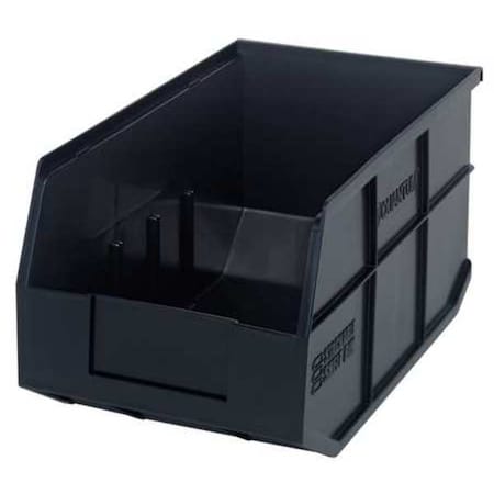 Shelf Bin, Color Black, Includes Dividers Dividers Not Included, Includes Label Holder Label Holder Included, Material Plastic, Maximum Operating Temperature 250 Degrees F, Overall Height 7 in, Overall Length 14 in, Overall Width 8 1/4 in, Stackable Stacking Capable, Weight Capacity 60 lb, Mobility Stationary, Nestable Not Nesting Capable, Number of Divider Slots 3, Number of Long Divider Slots 0, Number of Short Divider Slots 3, Number of Dividers Not Applicable