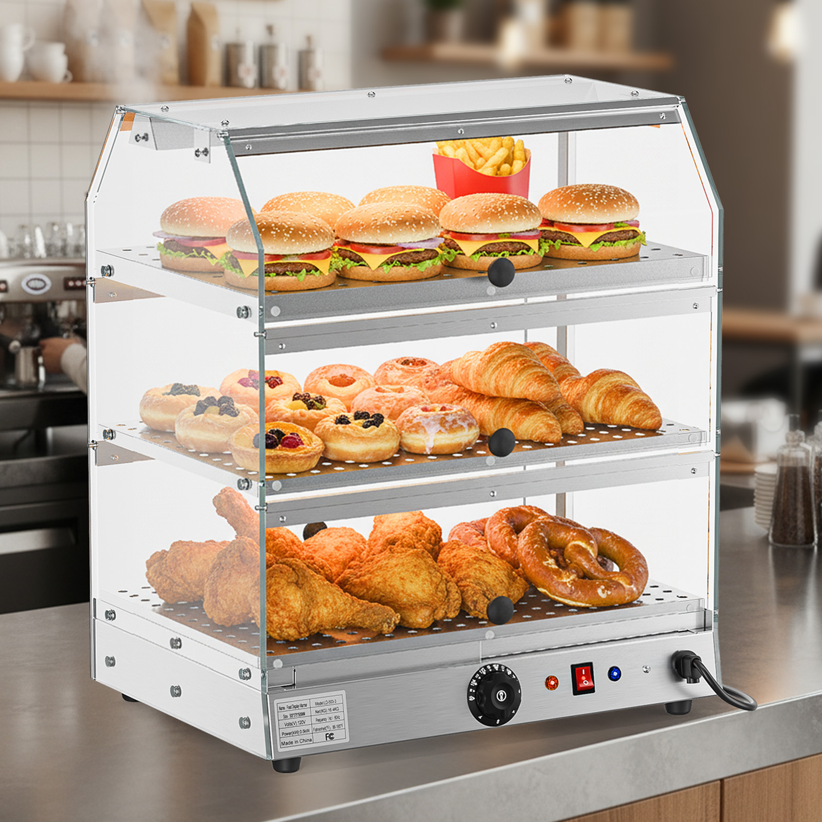 It is the best way to display merchandise to show customers your food while storing items at a healthy temperature. Suitable for commercial use in canteens, bakeries, cafes, buffets , fast food restaurants and convenience stores , ideal for warming pizza, egg tart, fried chicken, hamburger, etc