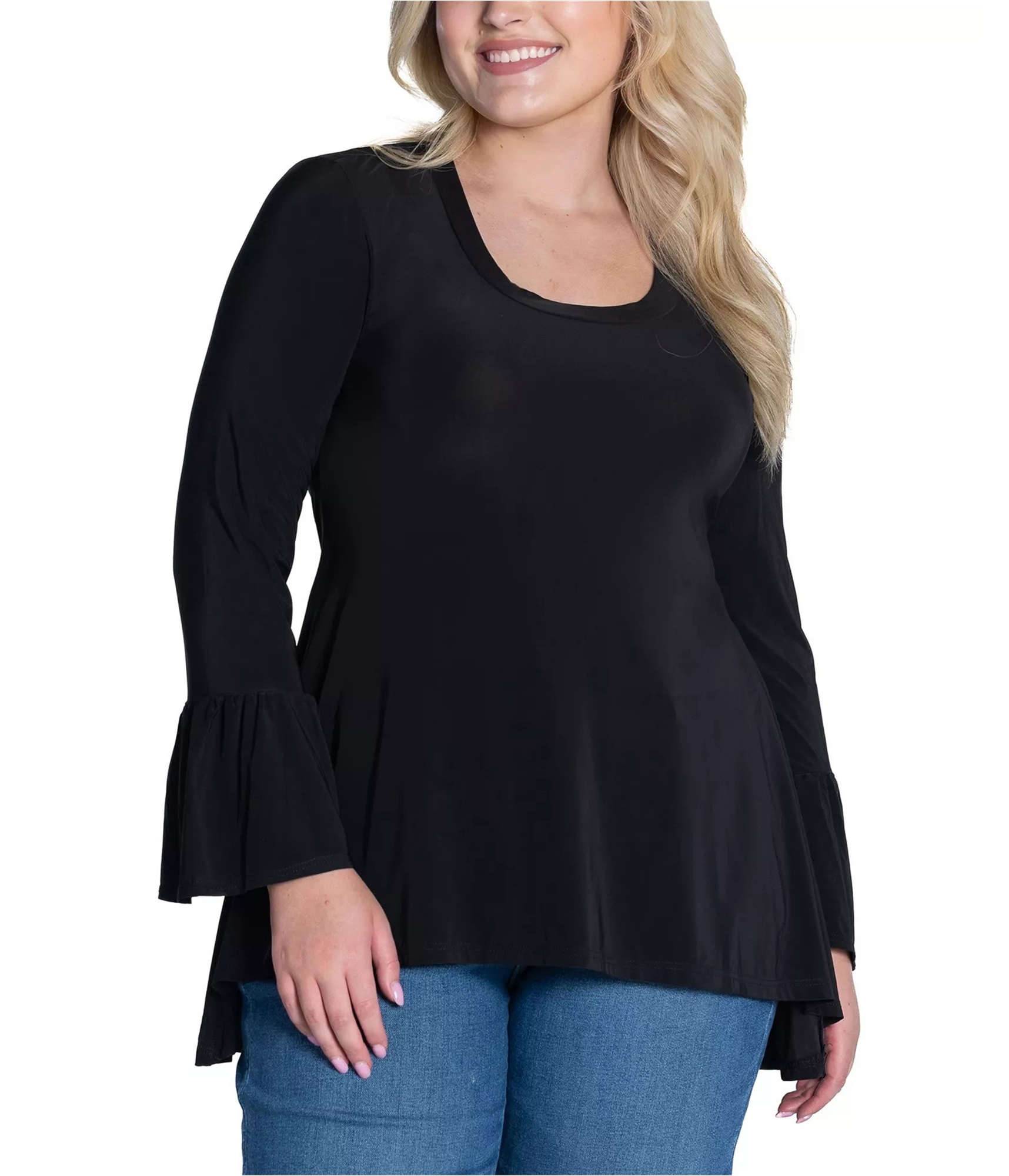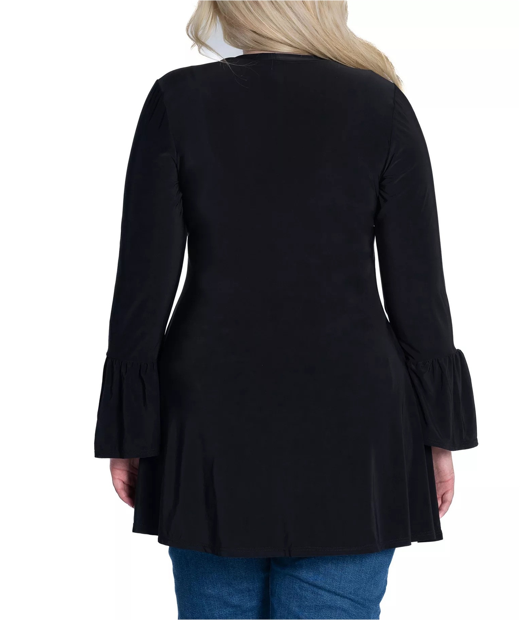 24seven Womens Bell Sleeve Tunic Blouse, black, Plus Size, 3X