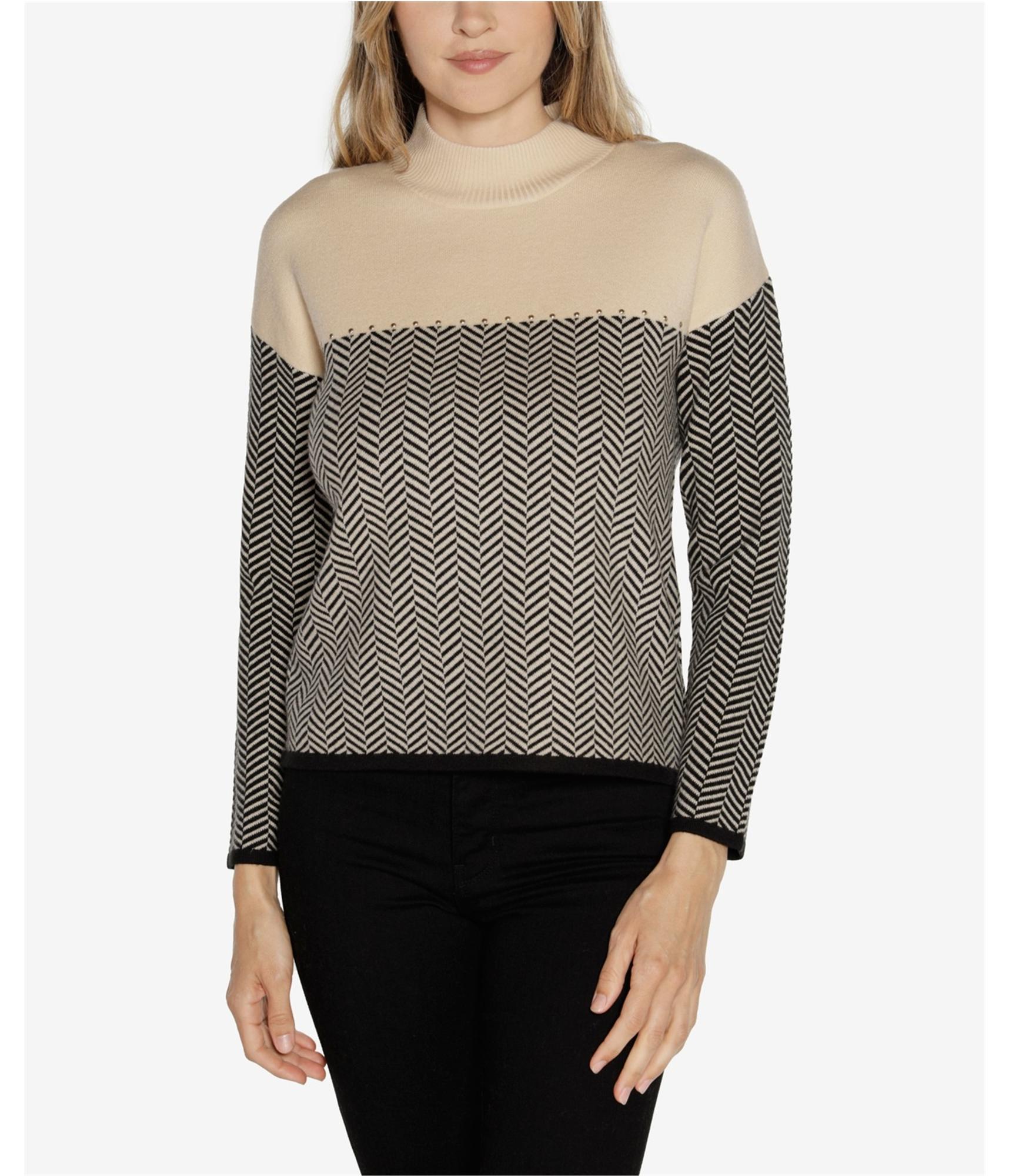Belldini Womens Embellished Colorblock Pullover Sweater, creamcombo, S