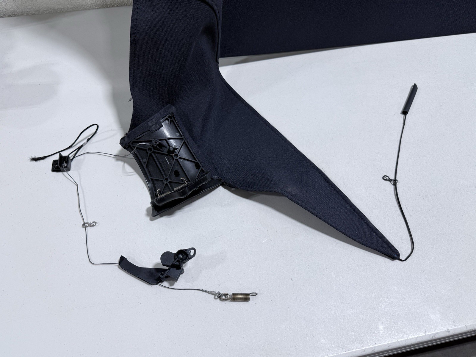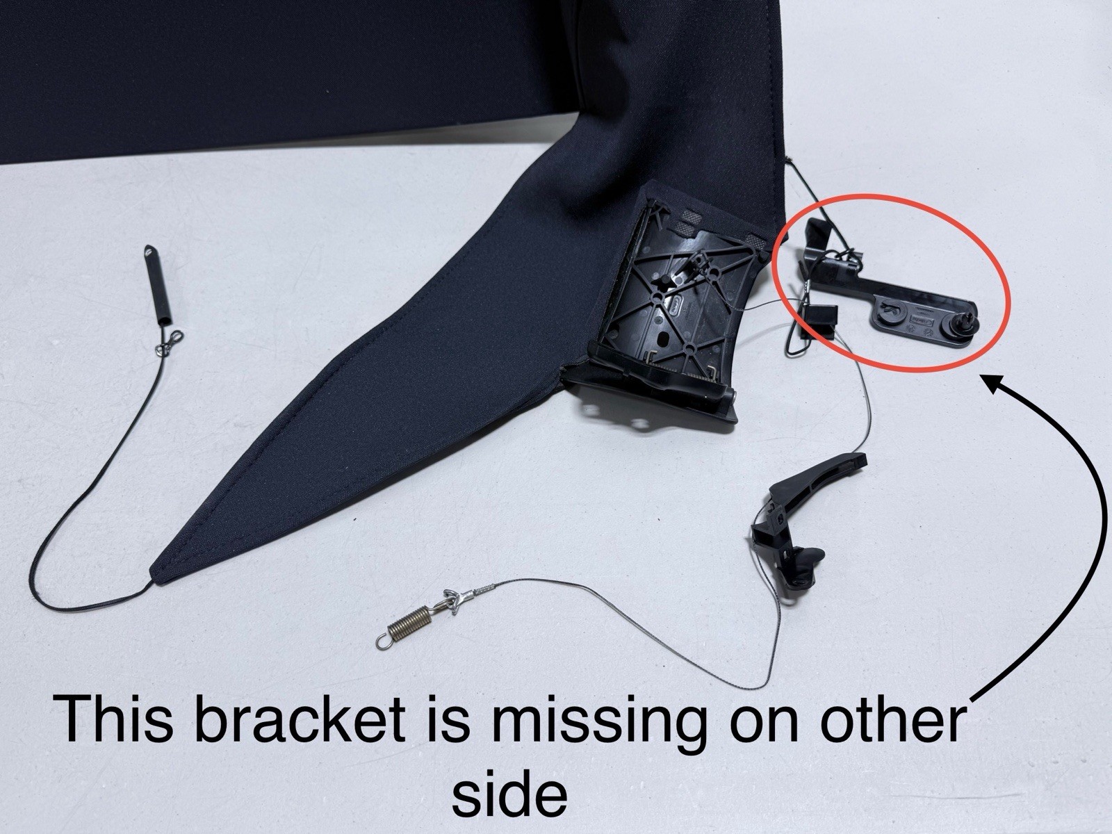 Good condition. NO stains, NOT sagging, NO creases. As mentioned in photos, one side has a missing bracket and a ripped rope, red circle shows where it’s supposed to be attached to, can be sowed back in place.