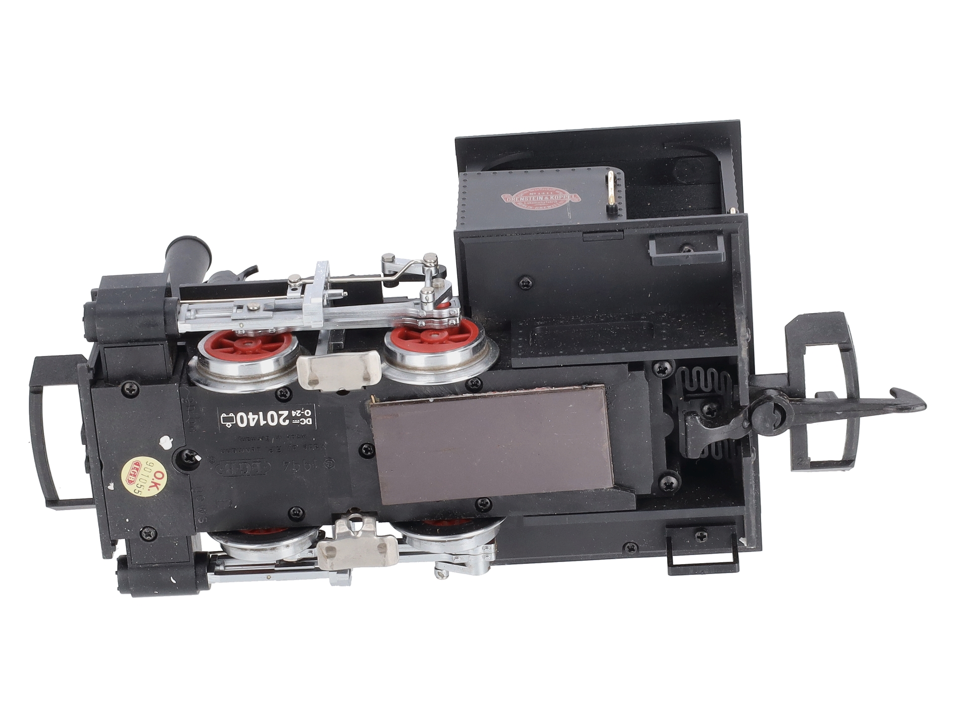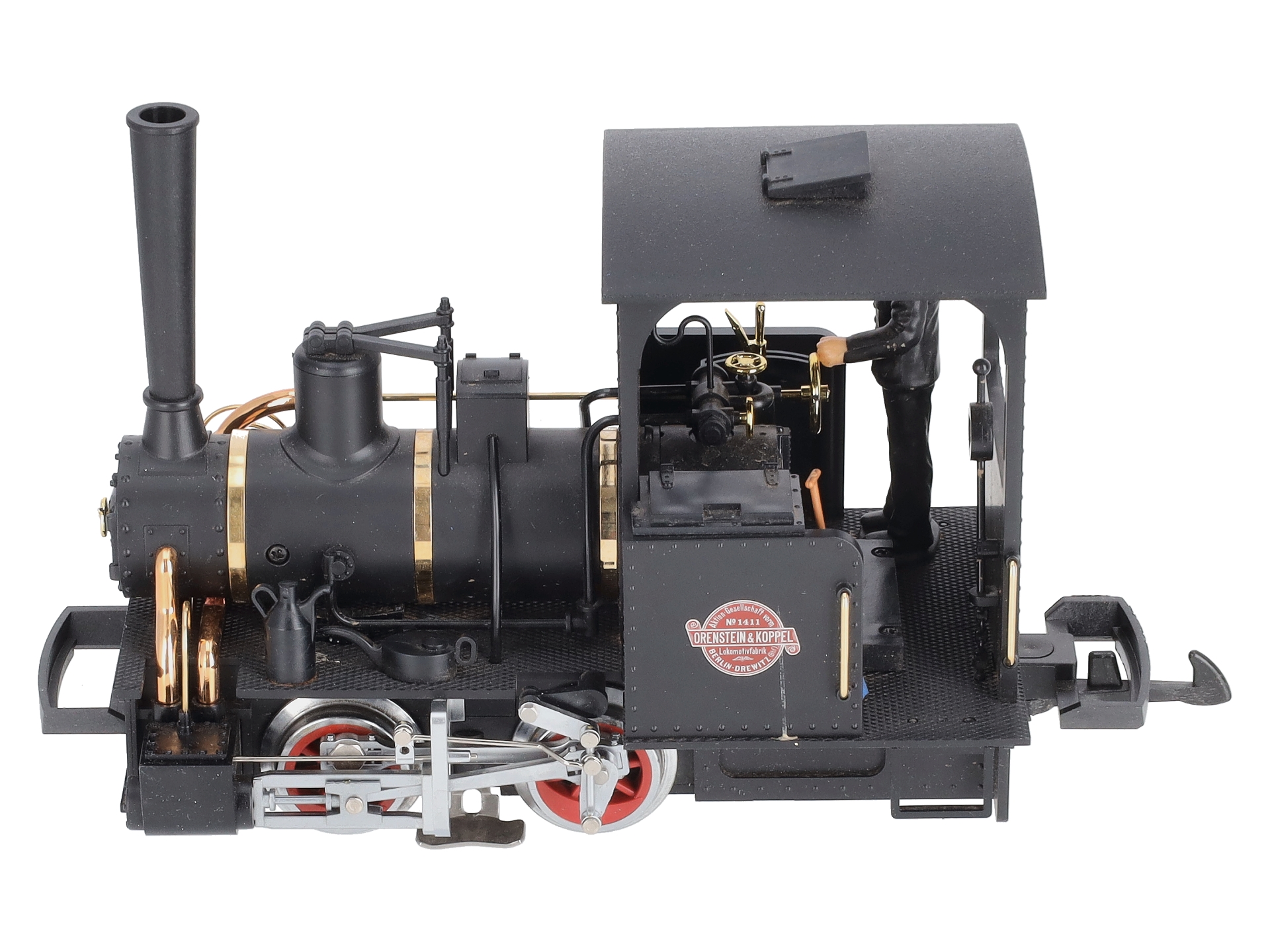 Here is a LGB 20140 G Scale Orenstein & Koppel Field Railway Steam Locomotive #1411. Orenstein & Koppel was a major German engineering company specialising in railway vehicles, escalators, and heavy equipment. The locomotive features a powerful motor, metal side rods, brass detailing, durable plastic construction, a detailed body, latch couplers, metal wheel and axles, and attractive decoration.
