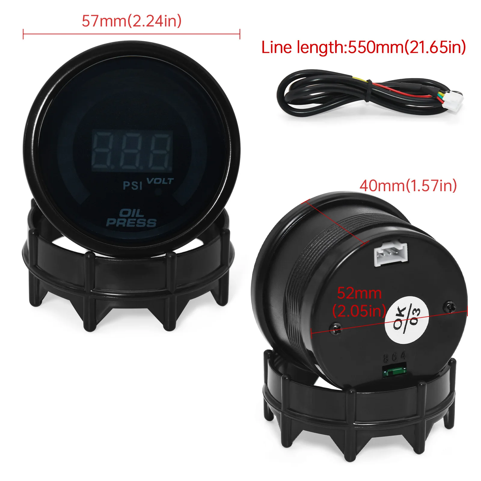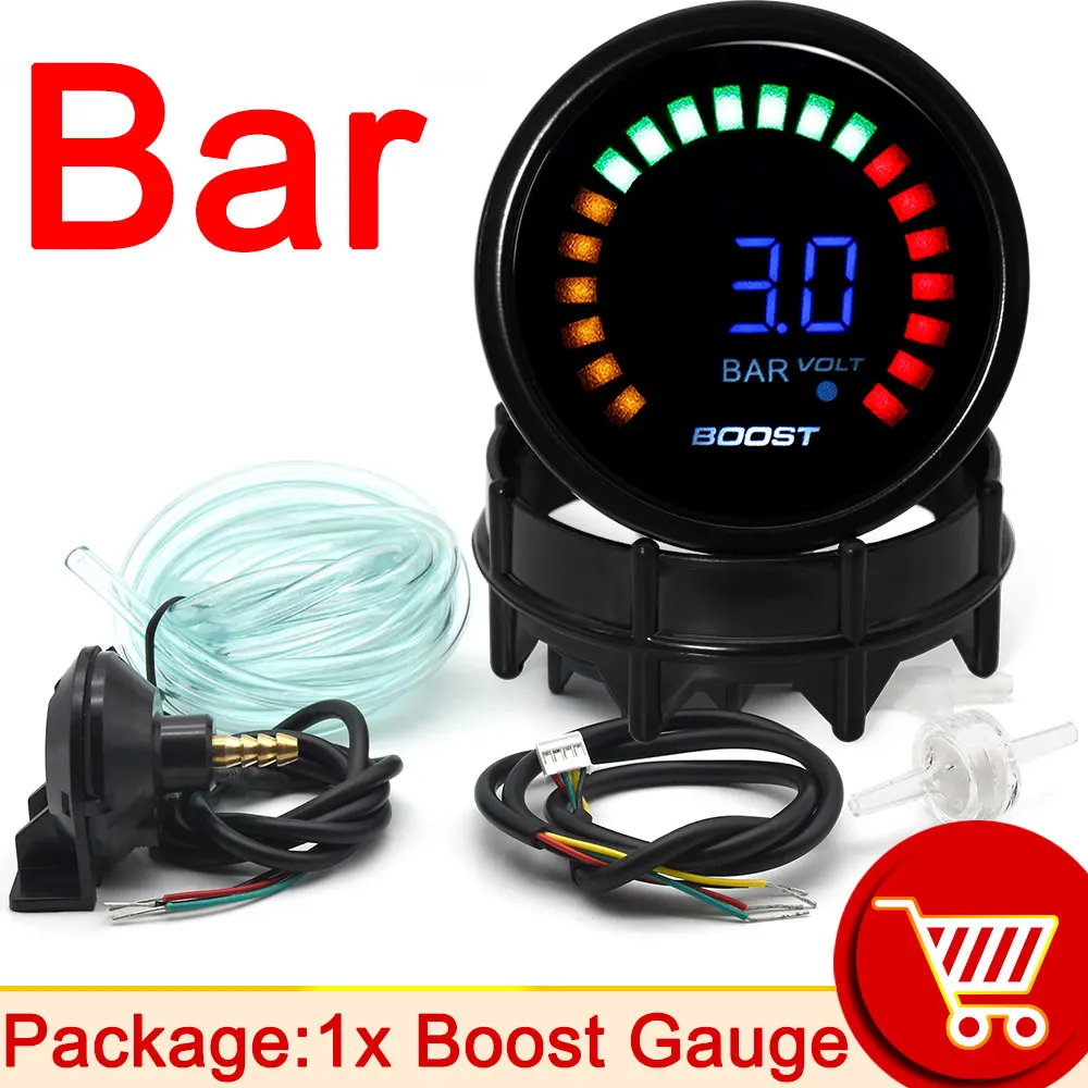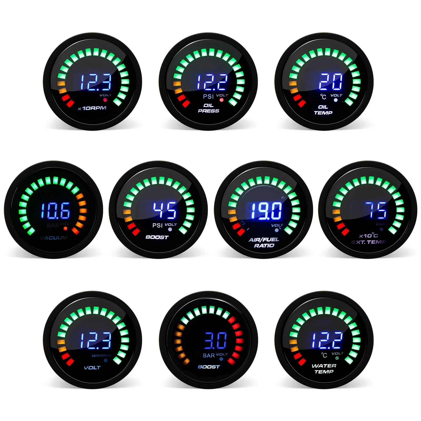 52MM Digital 20 LED Boost BAR PSI Vacuum Water Oil Temp Oil Press Voltmeter AFR EXT EGT Temp RPM Gauge for Petrol Engines
