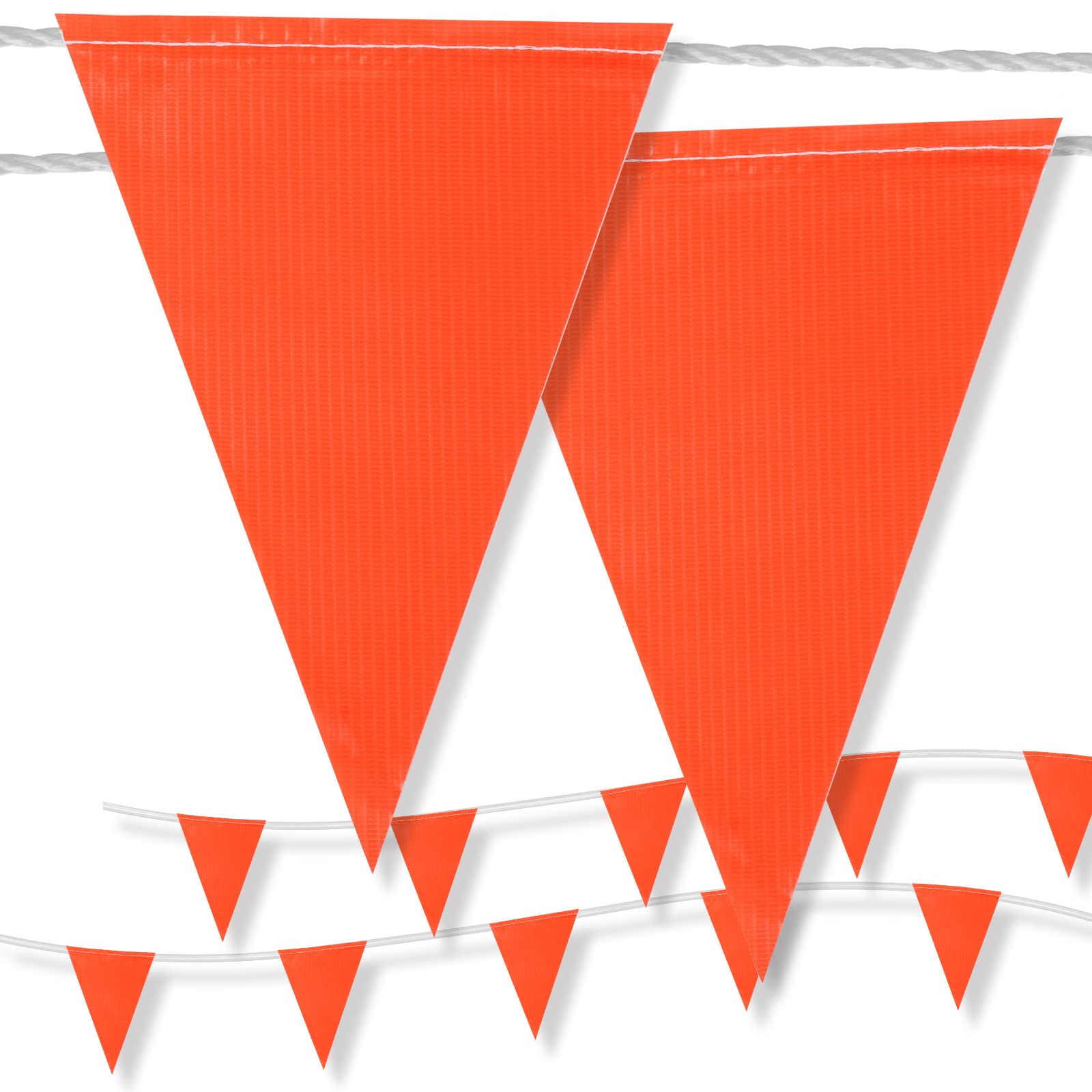 Pennant Flags On A String: strong nylon string with 500lbs tensile strength, strand fade resistant, 100ft total length, include 45 pennants.