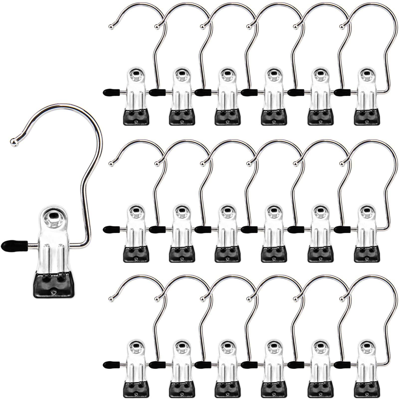 STURDY STAINLESS CONSTRUCTION: The clothespins are mainly made with stainless steel material, sturdier and more long lasting than plastic laundry hooks. Would not bend, deform or break even if you hang heavy shoes or boots on it. Great home essentials to make your closet neat and tidy