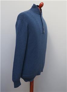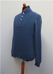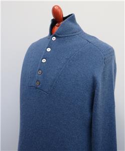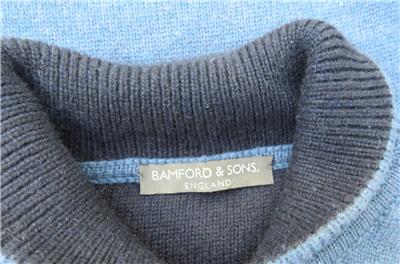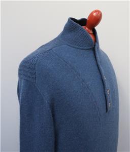 Mens Bamford & Sons 100% Cashmere Blue Button Neck Jumper S