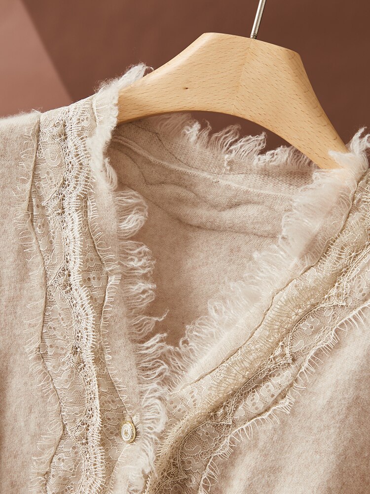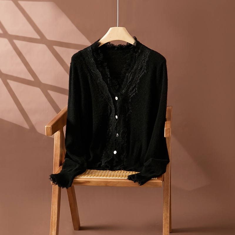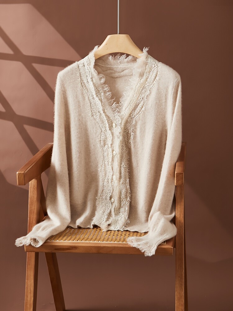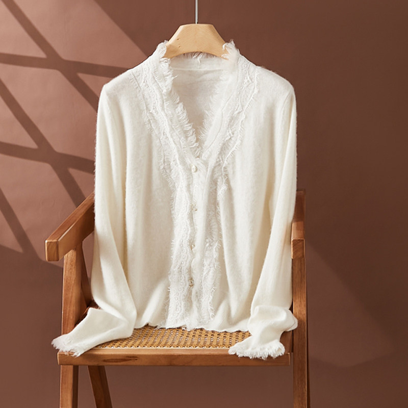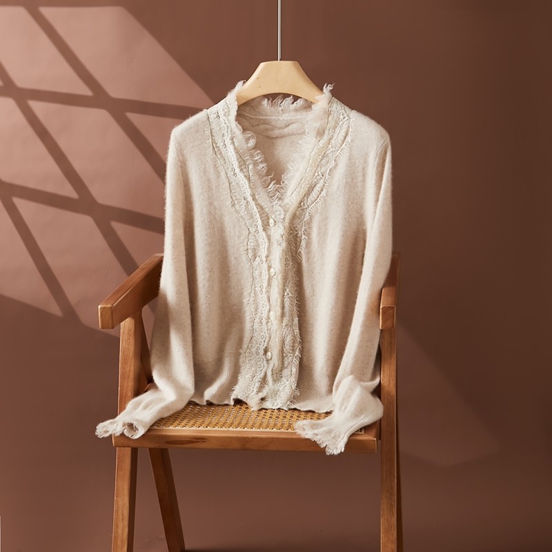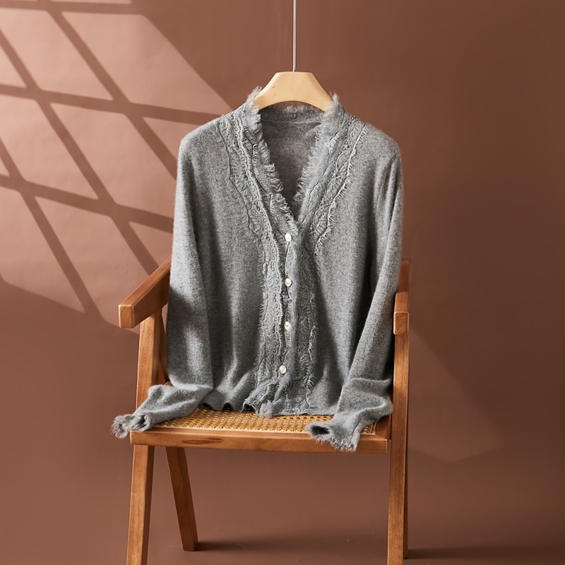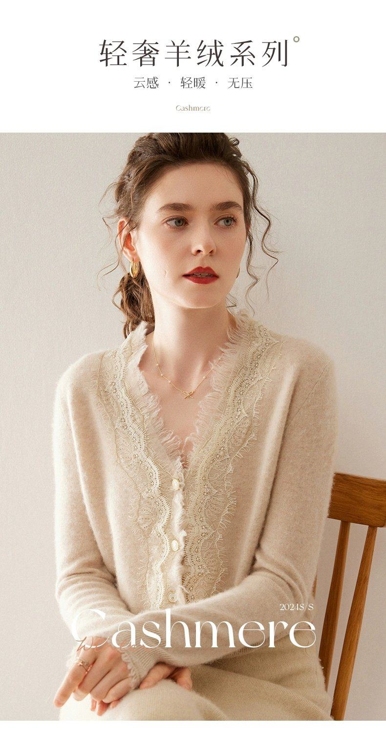 Women's Lace Wool Cashmere Cardigan Autumn 2026 Warm Knit Sweater Winter Jackets