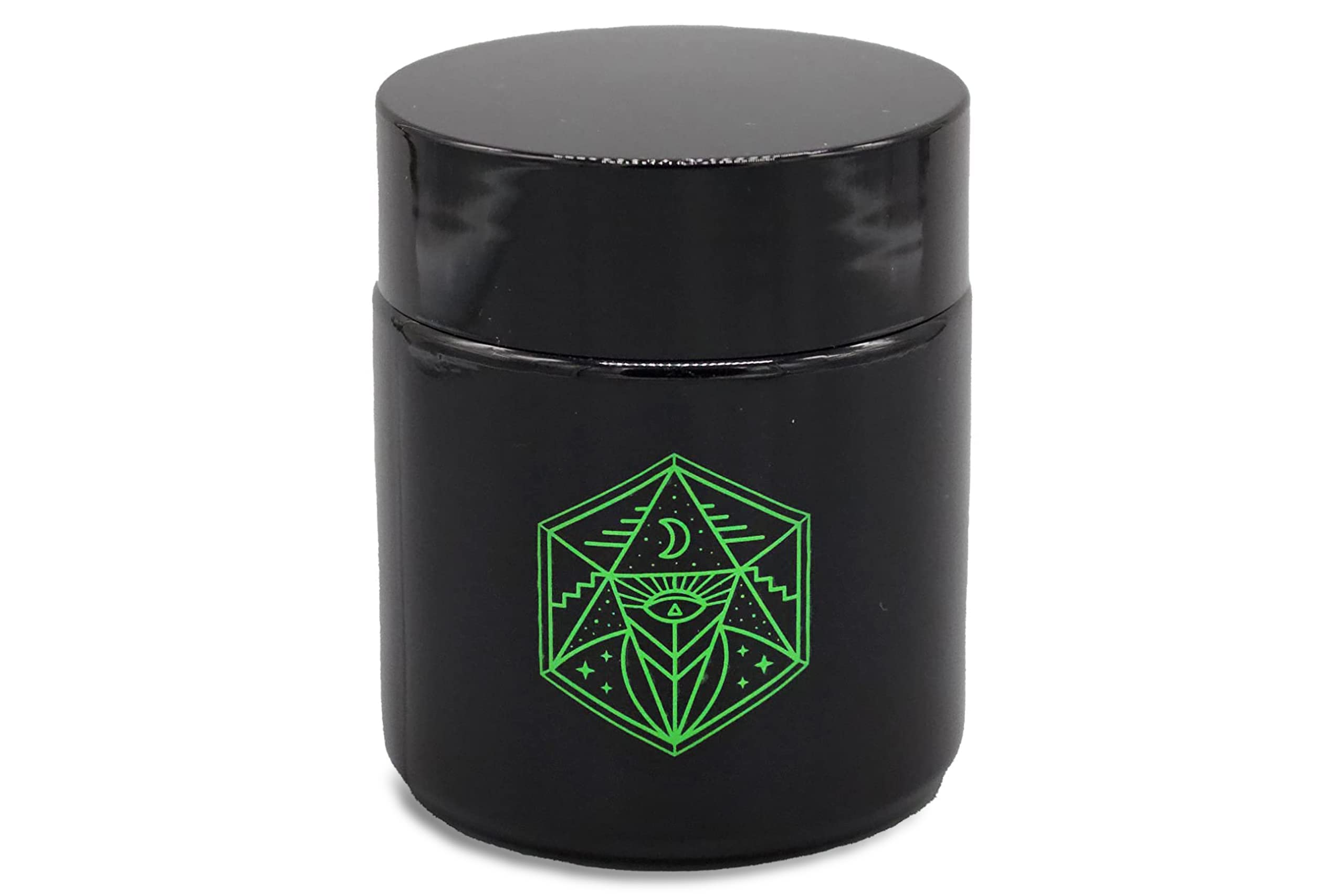 ULTRAVIOLET PROTECTION JAR WITH BLACK PLASTIC LIDS: Tinted black protect the product against the light; This also allows goods in the jar to be hidden from view; This is a great container to not only protect against the air but also against the sun; Elegant black plastic lids add a stylish touch; You can also use these small glass storage jars for spices and herbs as the jar has ultraviolet protection