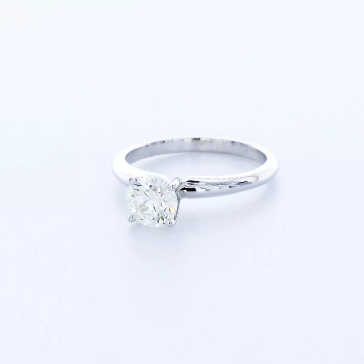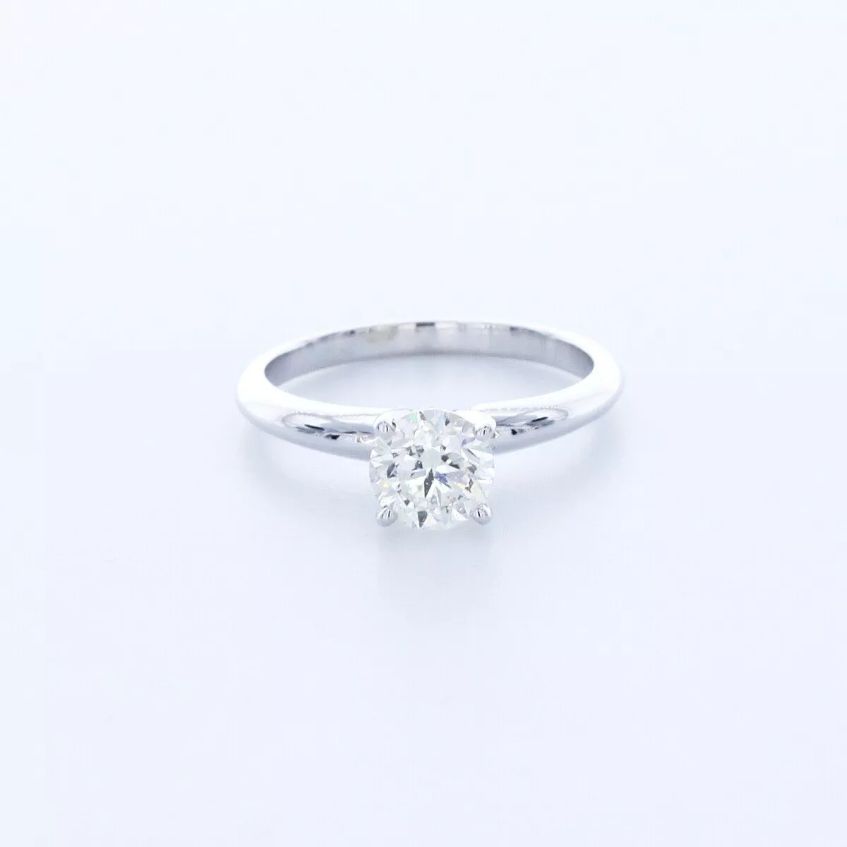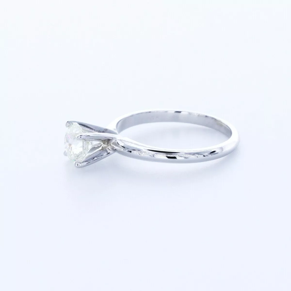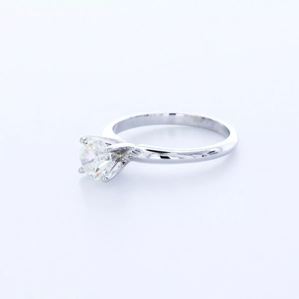 Solid 14K White Gold Solitaire Engagement Ring Classic AGI Cert 0.90 CT Round Lab-Grown Diamond E VS2