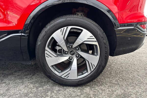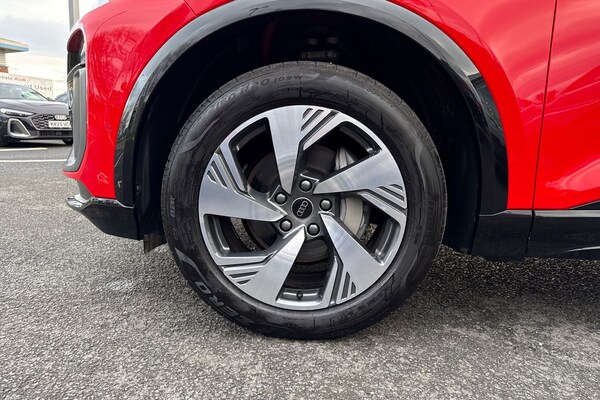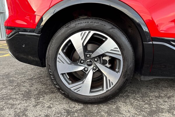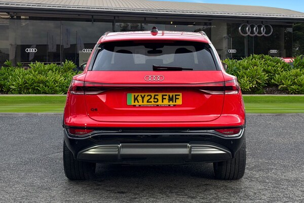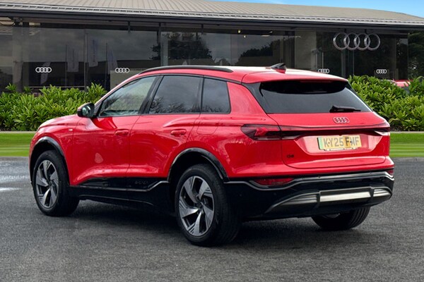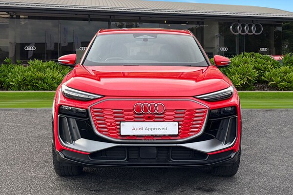 This Audi Q6 e-tron S line is now available from Carlisle Audi. This electric vehicle boasts a substantial 100 kWh battery, offering a maximum range of 365 miles when new. This Q6 comes with impressive acceleration of 0-62mph in just 6.7 seconds, alongside convenient charging. A full charge at home taking approximately 15 hours and 30 minutes using a 7kW charger, while rapid public charging can take the battery from empty to 80% in as little as 25 minutes. This Q6 is finished in the eye catching Soneira Red, and sits on a set of 20"" Gloss Turned alloy wheels, allowing you to stand out from the crowd no matter where you wish to travel. The rear windows are fitted with Privacy Glass, enhancing the privacy of your rear passengers. This Q6 is fitted with the Sound and Vision Pack, this includes increased charging capacity for USB ports and MMI experience pro, adding to the practicality of the vehicle. This pack also includes the Ambient lighting package plus with dynamic interaction light adding to the modern look of the cabin whilst the Bang & Olufsen premium sound system with 3D sound and integrated headrest speakers allows you to listen to all your favourite music in striking sound quality. This pack also includes an Augmented reality head-up display, projecting important information such as your speed and the speed limit at eye level on your windscreen, allowing you to keep your eyes on the road as you travel. The cabin is fitted with a panoramic glass sunroof, perfect fo...