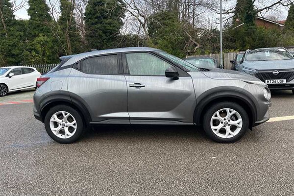 Drive away in this sleek Gun Metallic Nissan Juke N-Connecta Manual, now available at Brayleys Nissan Altrincham. With just 31,115 miles and one previous owner, this well-kept example comes with full service history and 2 keys, offering excellent value and peace of mind. The N-Connecta trim delivers an impressive level of technology and comfort, including: NissanConnect System with Satellite Navigation Apple CarPlay & Android Auto Bluetooth, USB Input & DAB Radio Climate Control for perfect cabin comfort Rear View Camera for stress-free parking Cruise Control with Speed Limiter Lane Departure Warning Automatic Headlights & Rain-Sensing Wipers 17"" Alloy Wheels Privacy Glass for a premium, stylish finish ???? Every vehicle is thoroughly checked with a full 100-point inspection by our qualified Nissan technicians and includes a 12-month warranty, top-level breakdown cover, and MOT care—giving you full confidence from day one. ???? Want a closer look? We can send a personalised video directly to your phone, or you can reserve this car online for just £99. ???? Special Offer: Enjoy 2 Years FREE Servicing when you finance this vehicle on PCP through Nissan Finance (T&Cs apply). ???? We welcome all part exchanges and offer nationwide home delivery for your convenience. ? Ask about our Premium Delivery Packs and Brayleys Altrincham Car Care Packages to complete your perfect Juke experience.