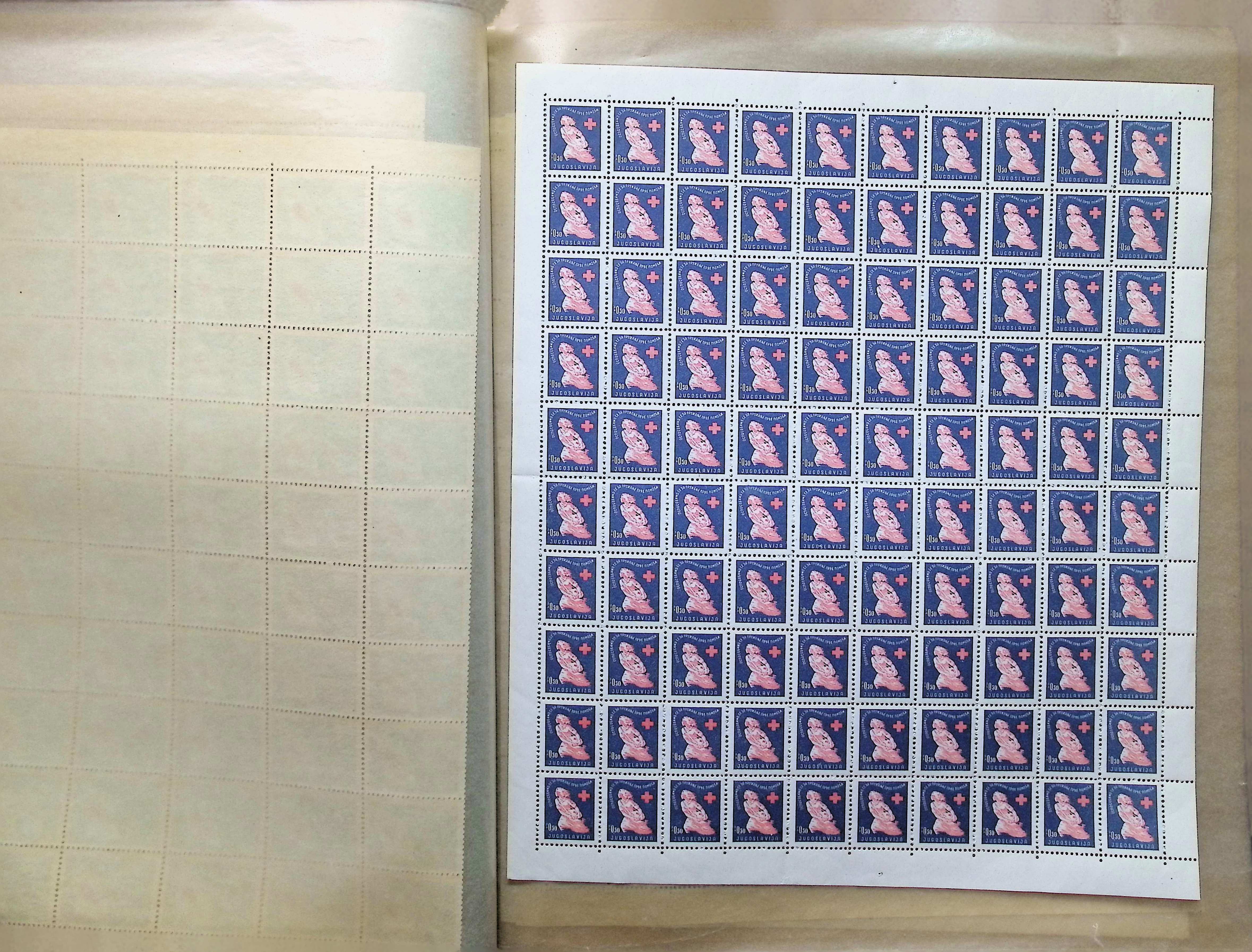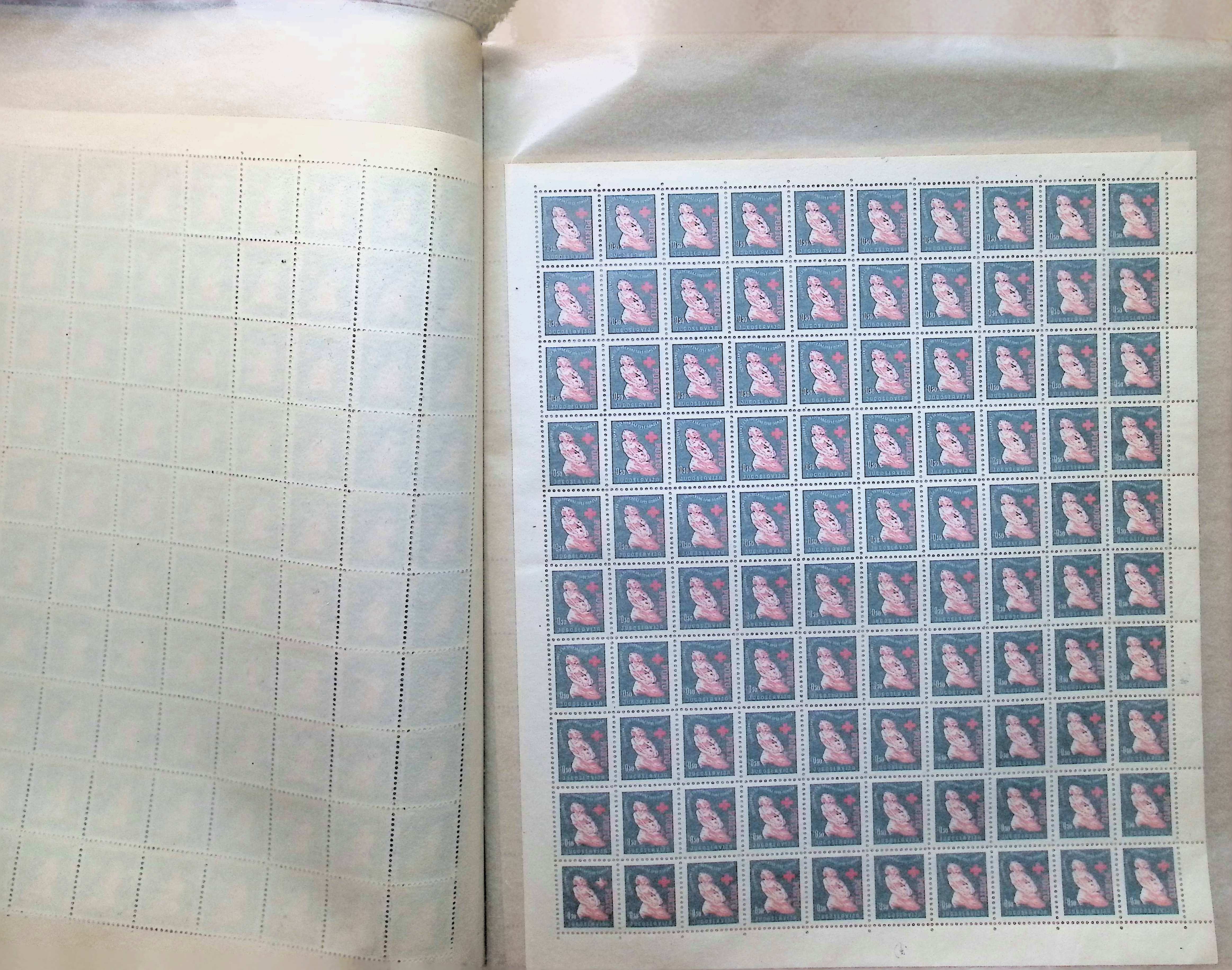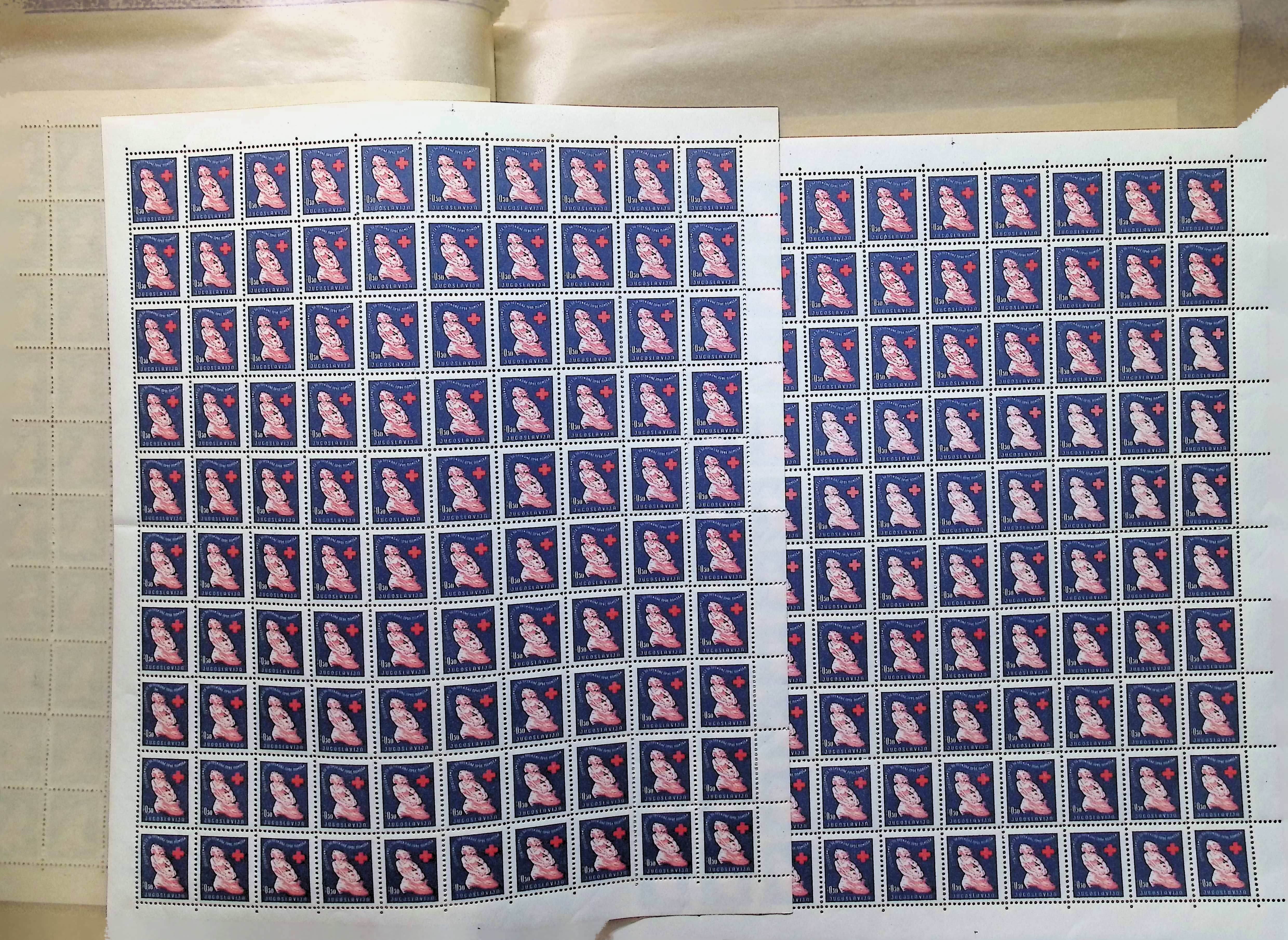 A group of Yugoslavia Postal Tax stamps in complete mint sheets in a sheet file book. Sheets have been stored with 1 fold. RA-5, 6 and RAJ-3,5,6 multiple copies 100s of stamps not all shown many duplicate sheets.