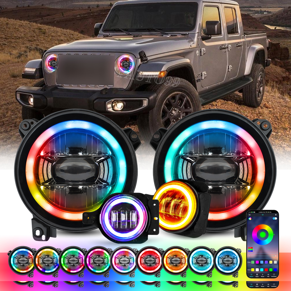 2PCS 9 Inch RGB Halo LED Headlights: