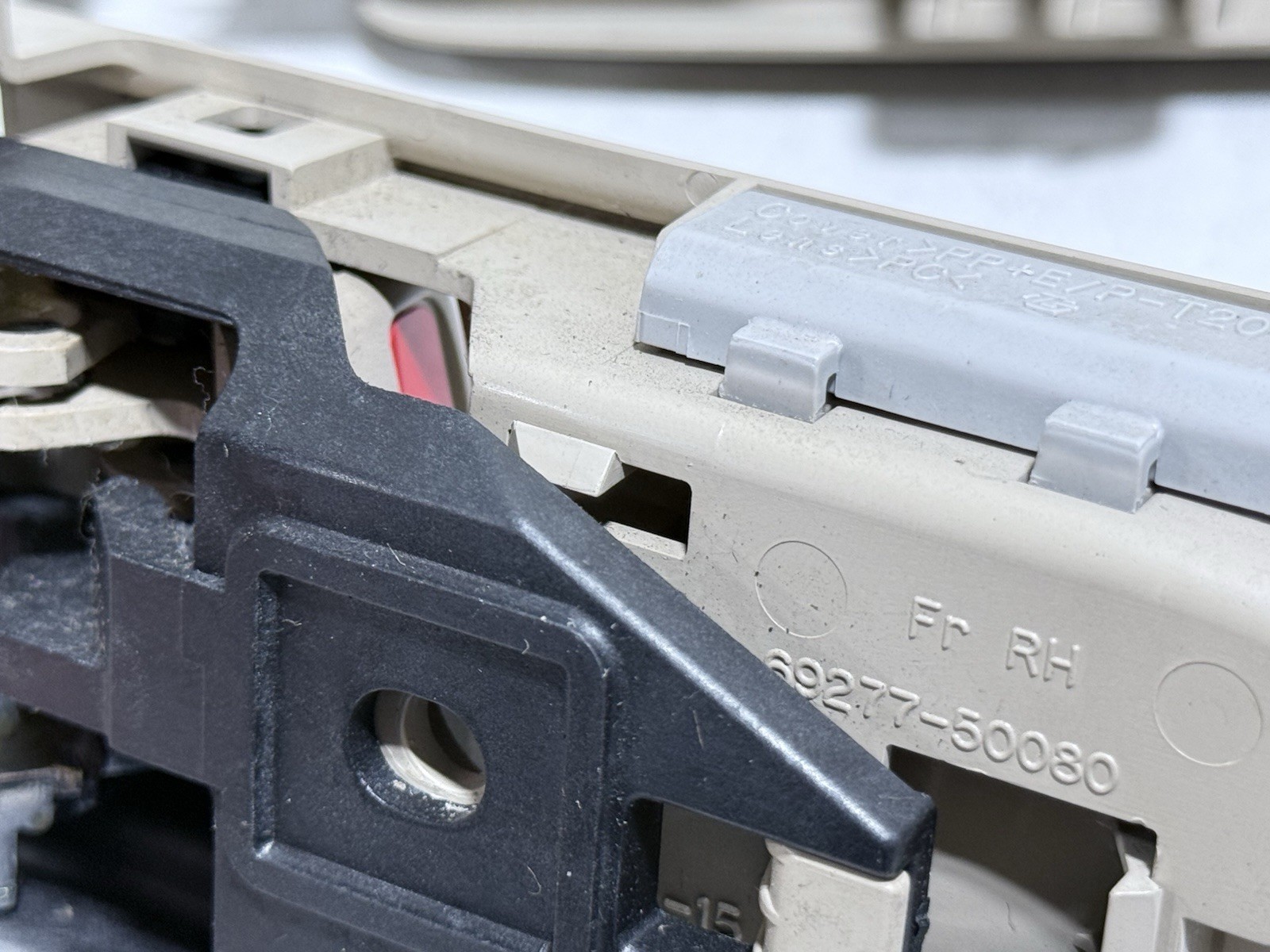 Front passenger side handle has one broken clip on the cap that covers the bolt. Still holds firm and just fine by the other two.