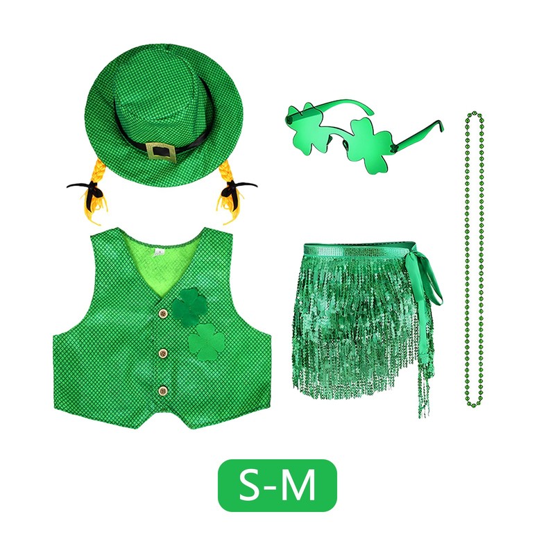 Kids Girls St Patrick Day Irish Clover Cosplay Costume Sequin Vest Costume