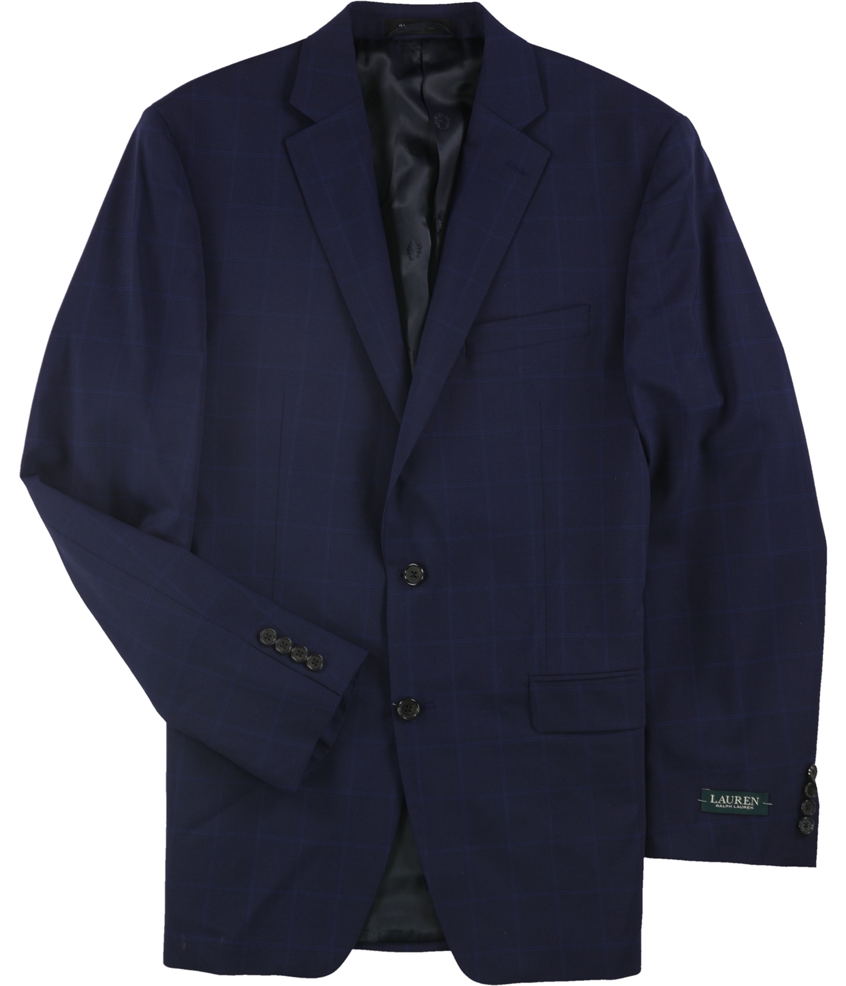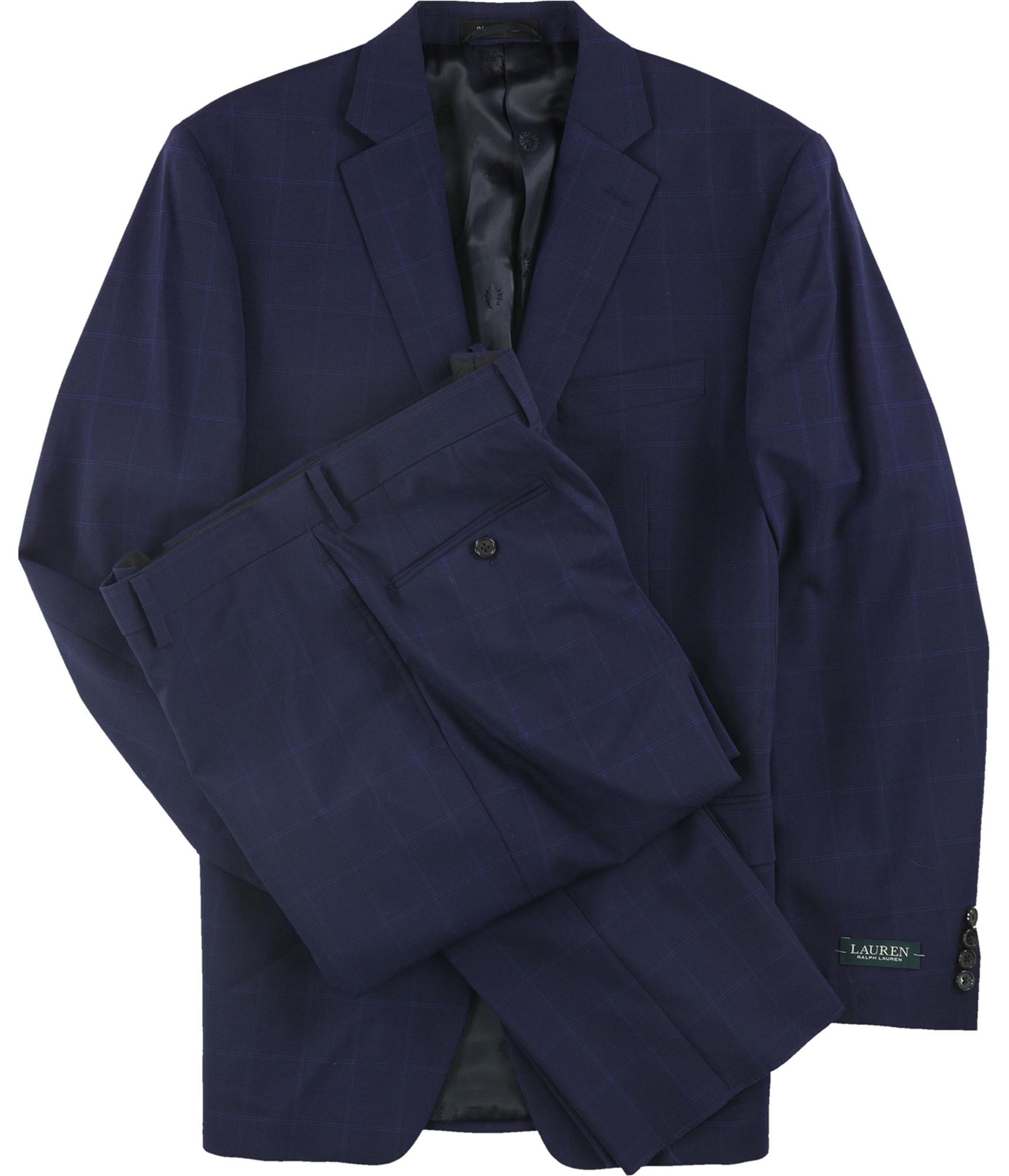Ralph Lauren Mens Double Windowpane Two Button Formal Suit, navy, 40 Long, 34W x UnfinishedL