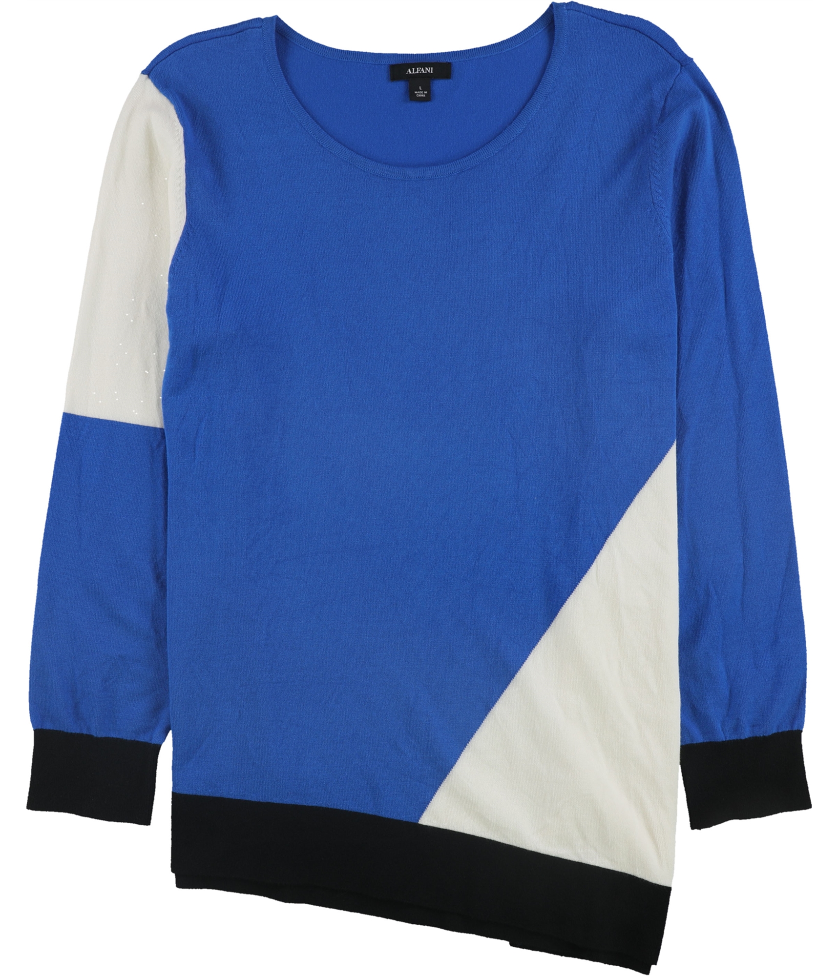 RAYON BLEND: The Alfani Womens Colorblocked Pullover Sweater is fashioned with 65% Rayon and 35% Nylon, providing medium weight comfort in a color blocks pattern.