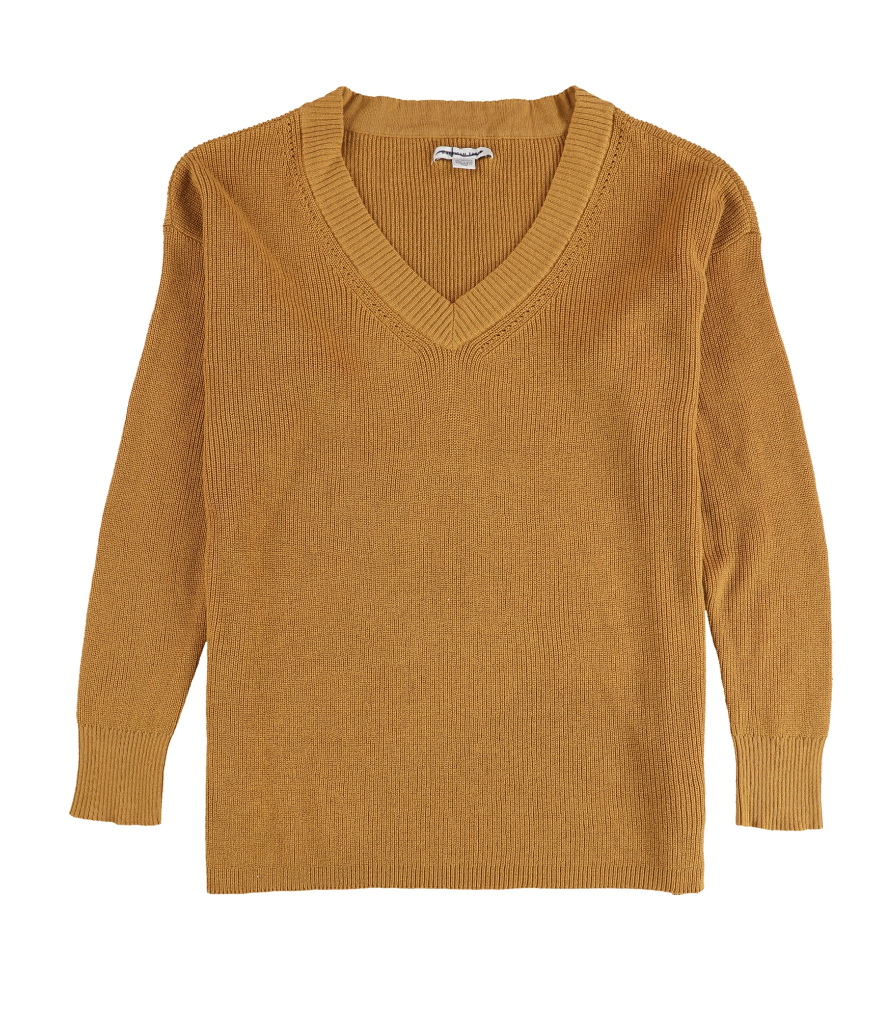 American Eagle Womens Solid Ribbed V-Neck Pullover Sweater, orange, XS