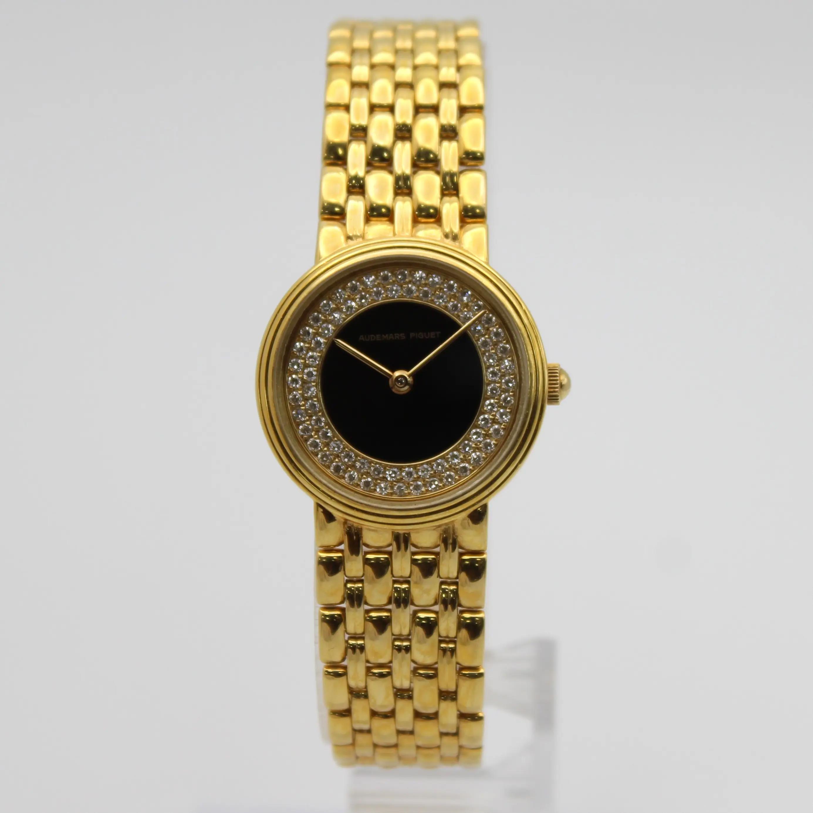 Audemars Piguet Classic Onyx Diamond 24mm 18K Yellow Gold Vintage Watch