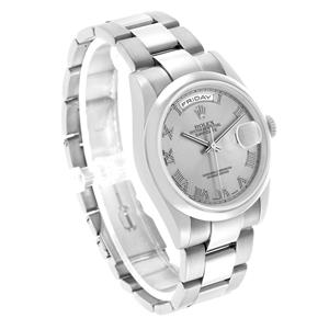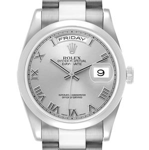 18k white gold oyster case 36.0 mm in diameter. Rolex logo on a crown. |