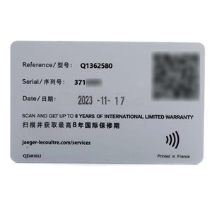 Jaeger Lecoultre card, presentation non-Jaeger Lecoultre box. Exclusive SwissWatchExpo Certificate of Authenticity. |