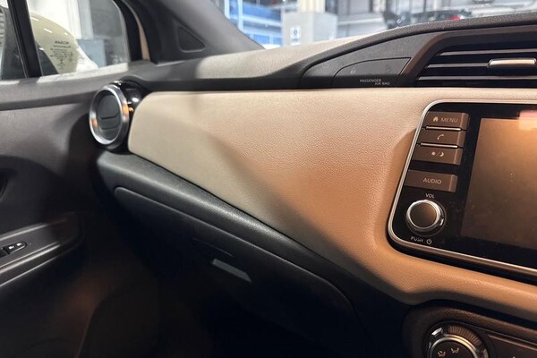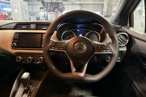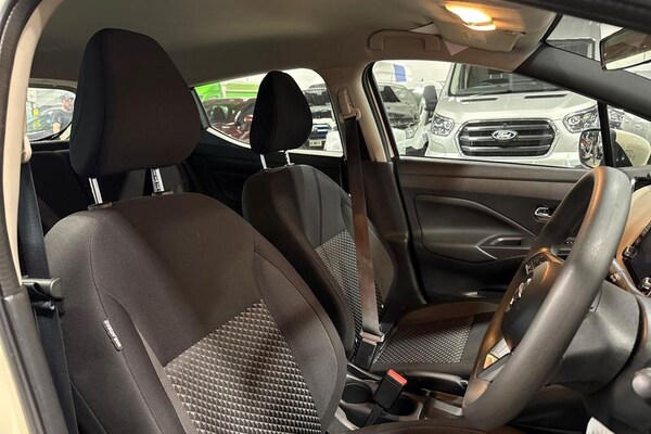 Adjustable speed limiter, Advanced drive assist display 5'' TFT coloured screen, Bluetooth system, Cruise control, eCall emergency call system, Engine start button, Lane departure prevention, Lane departure warning system, Nissan connect display audio, Outside temperature gauge, Power assist steering, Smartphone integration with Apple CarPlay and Android auto, Stop/start system, Traffic sign recognition, Trip computer, 4 pocket halogen headlights with signature finisher, Antenna, Automatic activation of hazard warning lights, Automatic headlights, Body colour front door handles, Body coloured bumpers, Body coloured door mirrors, Concealed rear door handles, Door mirror integrated indicators, Electrically adjustable door mirrors, Front fog lights, High beam assist, High mounted stop lamp, Jacknife key type x1, LED signature daytime running lights, Power front windows, Rain sensor windscreen wipers, Rear roof spoiler, Rear side wing doors, Rear wiper with reverse link, Variable front intermittent wipers, 12V power point front, 2 height adjustable rear headrests, 2 x front and 1 x rear cup holders, 3 seat bench in 2nd row, 60/40 split folding rear seat, Boot compartment cover, Boot light, Casual cloth upholstery, Chrome interior door handles, Driver's seat manual height adjust, Driver/passenger sunvisors and vanity mirrors, Front and rear door pockets with bottle holders, Front console storage box, Gear shift indicator, Grey PVC front door pads, Height adjustable front headrests