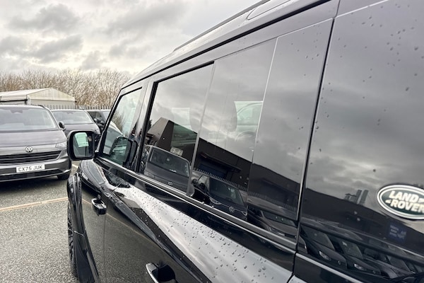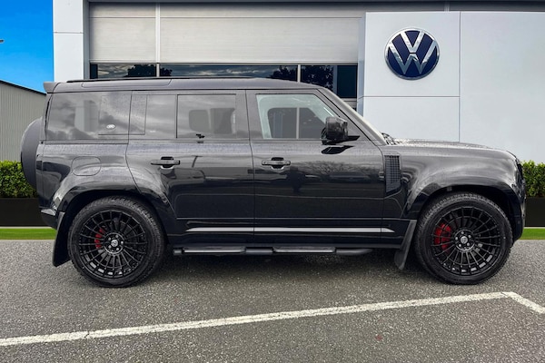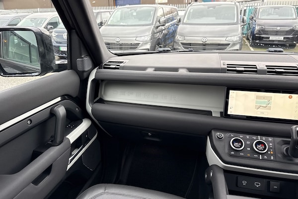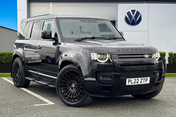 Take a look at this stunning Land Rover Defender 110 that is available to purchase at Wrexham Volkswagen. This Defender is powered by a 2.0L diesel engine that produces 250PS with automatic transmission and all wheel drive. The exterior is finished in a black paintwork, which is complimented by the 22in Urban WX-3 alloy wheels to the side. This Defender comes with a range of features on offer such as the Matrix LED headlights that keep the roads well lit in low light conditions, rear tinted windows for passenger privacy, keyless entry and starting for quick accessibility, and parking sensors that assist with maneuvering alongside the area view cameras. Moving inside, the stylish leather seating ensures comfort on every journey. The spacious rear seating area features a folding armrest with cupholders, vent controls and two USB ports. Occupants can enjoy the openable panoramic sunroof. The cabin features a pair of heated seats with power adjustment, climate controls, various storage compartments, multifunction steering wheel and touchscreen display. From this display you can access features such as navigation, FM/DAB radio, bluetooth connectivity for hands-free phone use and media streaming, and Apple Carplay/AndroidAuto. For more information regarding our flexible finance options or a personalised video, contact our sales team now. Part Exchange & Finance Available subject to T&Cs. This vehicle is compliant with Clean Air Zone (CAZ) or Ultra Low Emission Zone (ULEZ) reg...