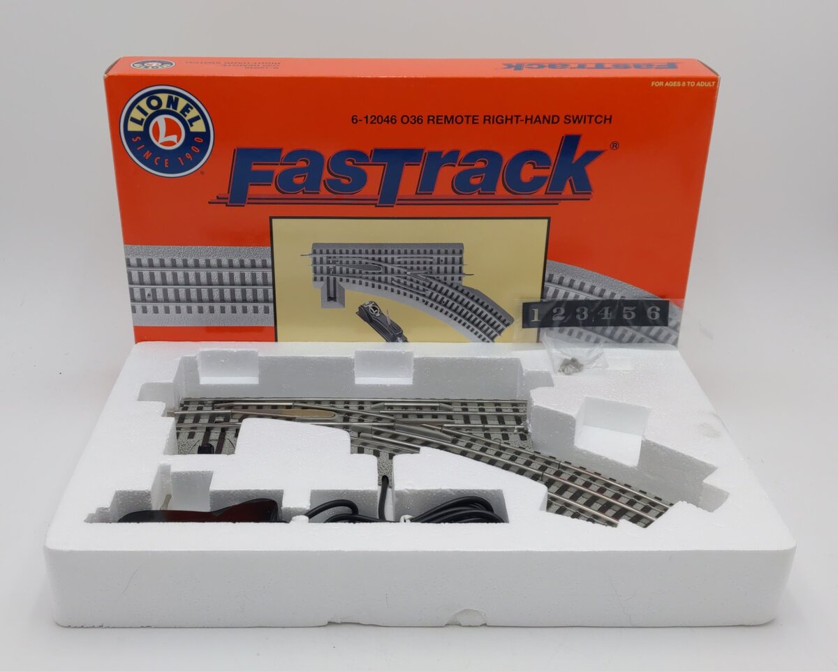 This is a single This is a Lionel 6-12046 O Gauge O36 Right Hand Remote-Control FasTrack Switch/Turnout. It features an operating lighted signal lantern and a lighted remote controller with interchangeable number inserts to keep track of which controller controls which switch. It includes a detachable 1/4 curve section to complete O36 45-Degree curve, or be detaching it you can get your sidings closer together.