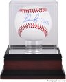 This display case comes with an autographed baseball from Nolan Ryan with the inscription "5714 K's." The display case features a 1/8"-thick clear acrylic removable lid with an antique mahogany finished base. It measures 5 1/4" x 5 1/4" x 6". It is officially licensed and authenticated by Major League Baseball and comes with an individually numbered, tamper-evident hologram from Fanatics Authentic. To ensure authenticity, the hologram can be reviewed online. This process helps to ensure that the product purchased is authentic and eliminates any possibility of duplication or fraud.