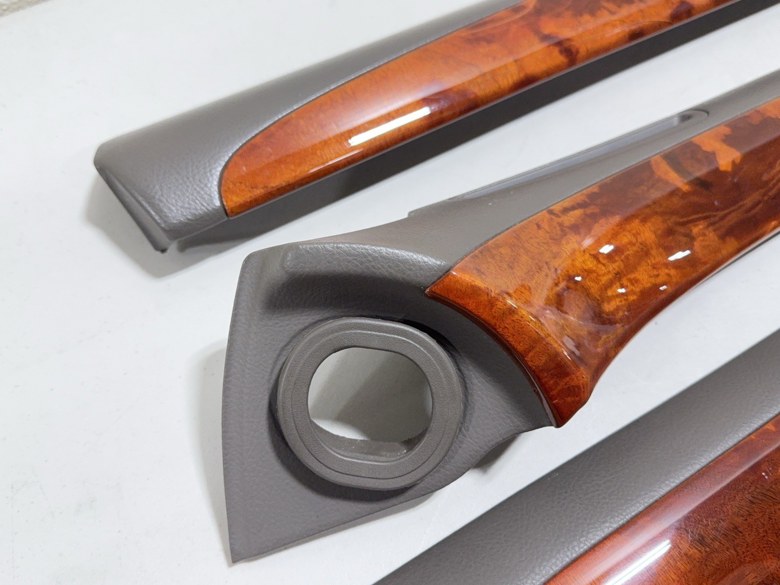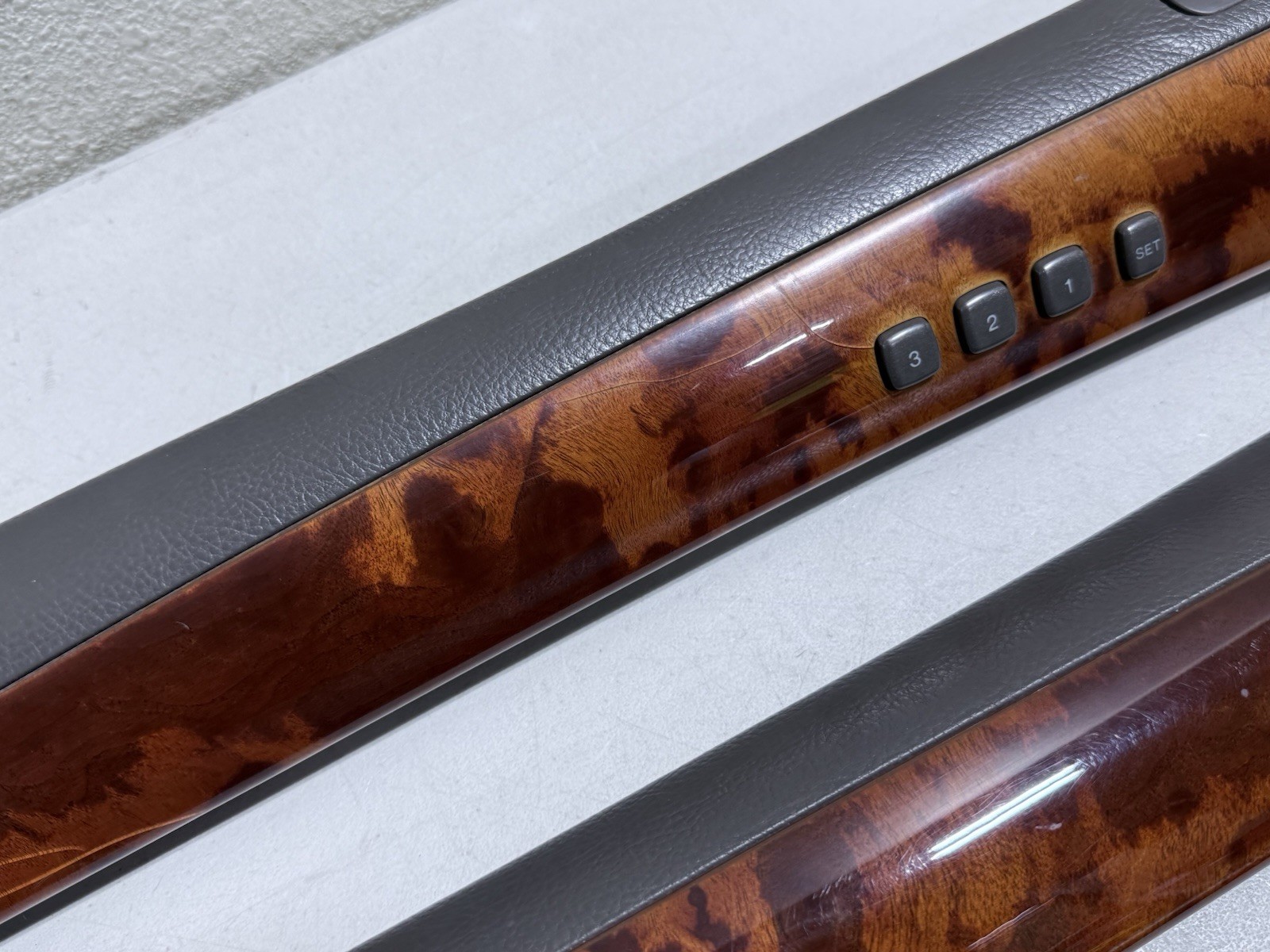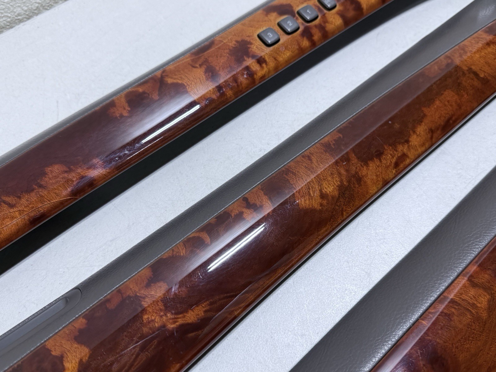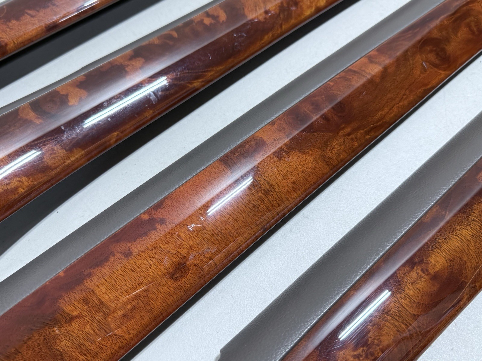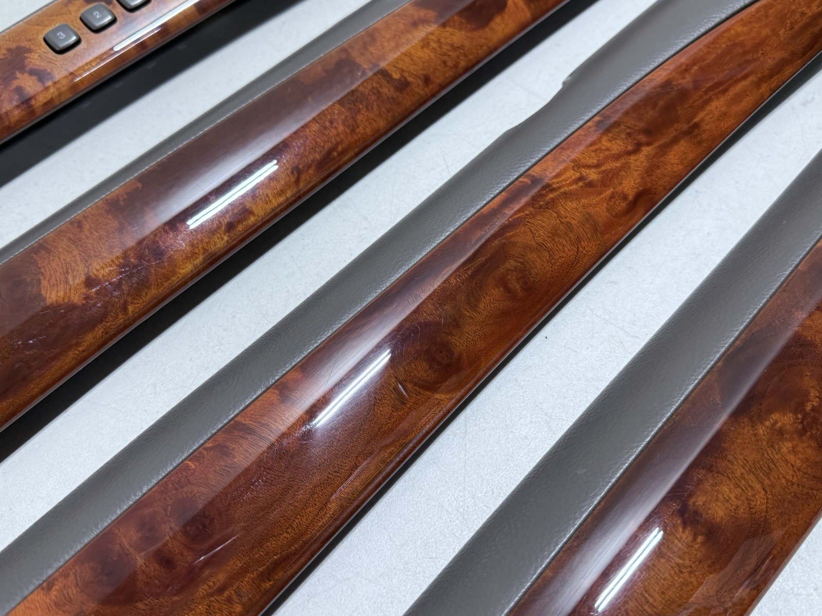 Wood has some scratches and cracks, Rear Left door plastic housing is cracked (shown in photo’s) wood trim is intact and solid.