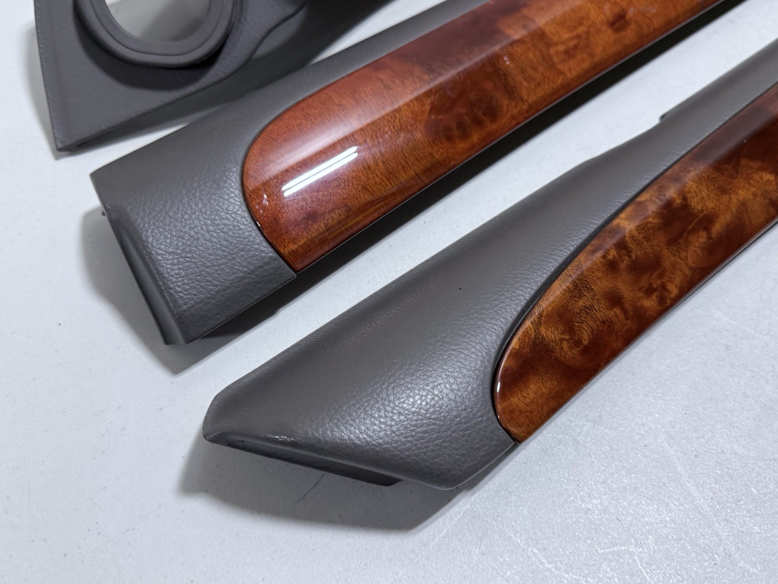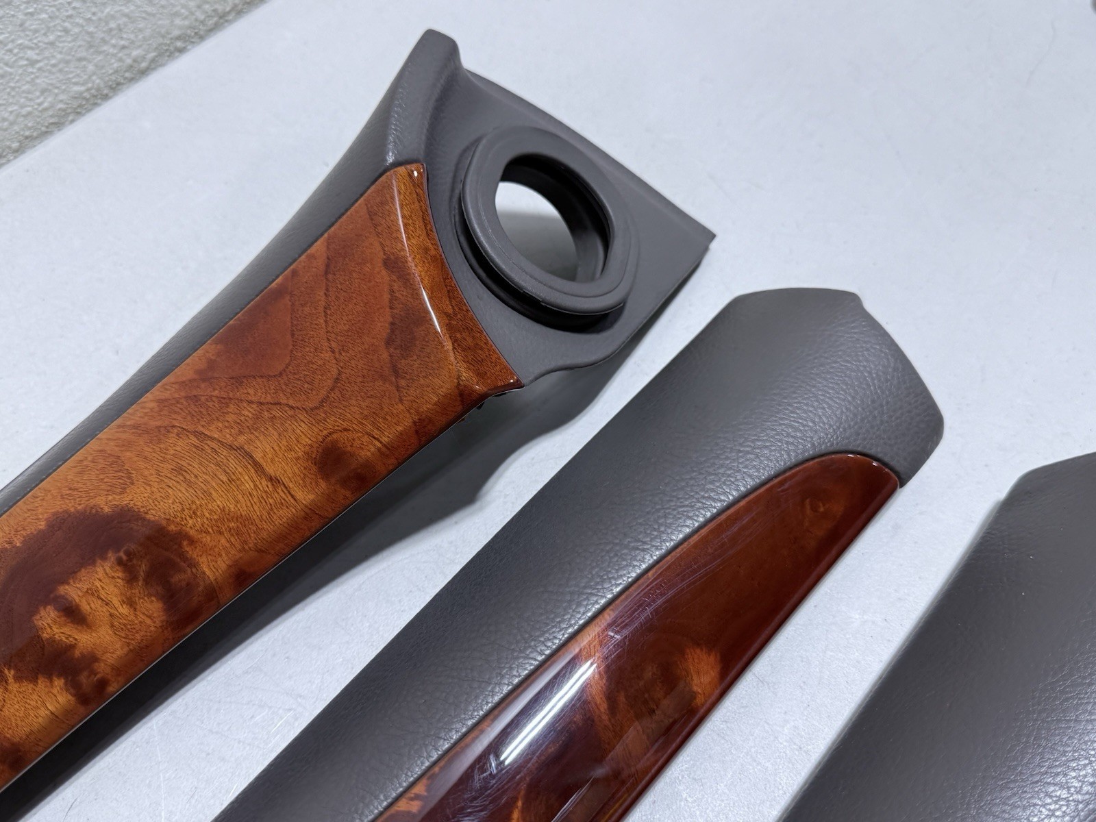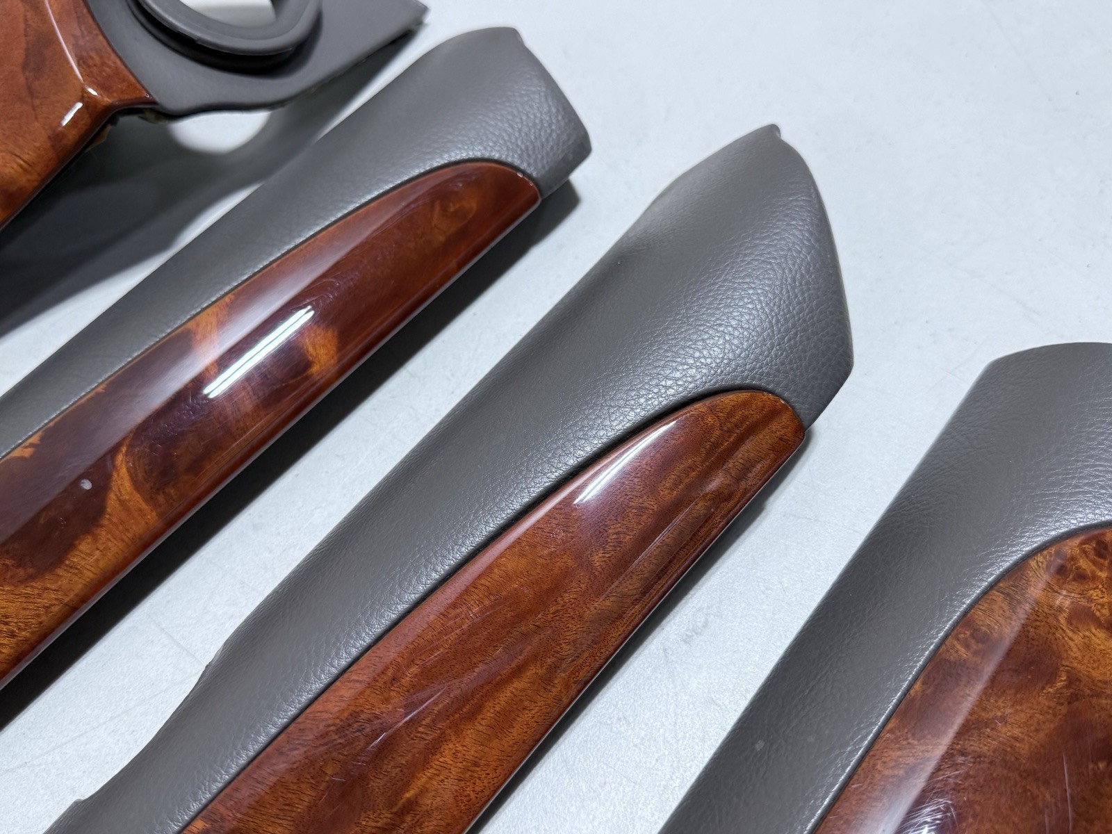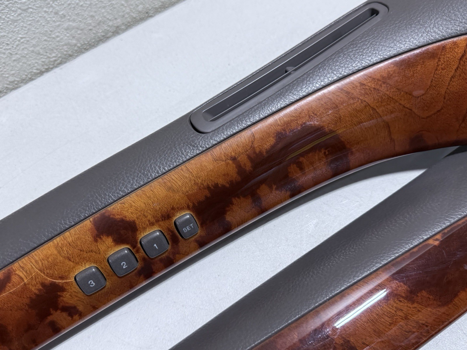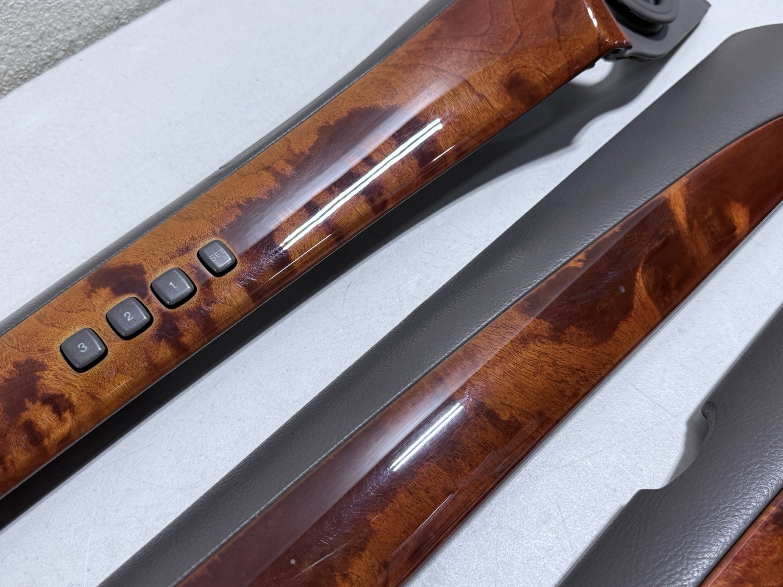 Wood has some scratches and cracks, Rear Left door plastic housing is cracked (shown in photo’s) wood trim is intact and solid.