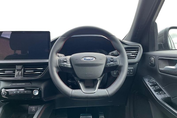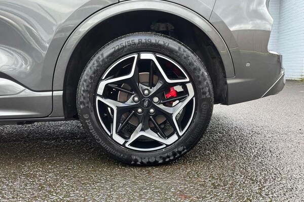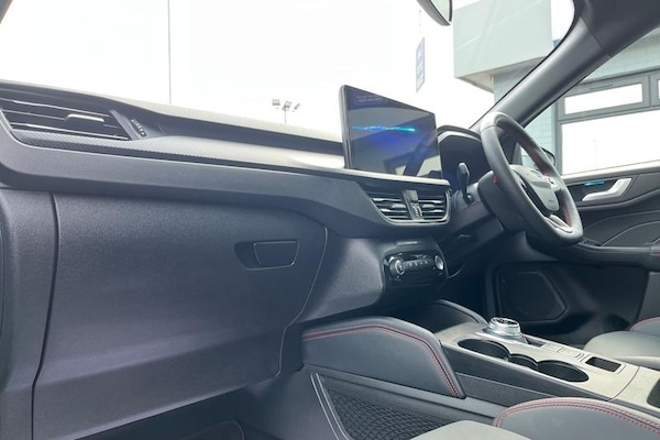 12.3 digital colour instrument cluster, 360 degree view camera, Clear exit assist, Cross traffic alert with active braking, e-Call (emergency call), Ford easy fuel, Ford SYNC 4 Navigation with 13 touchscreen, DAB radio, emergency assistance, Andriod Auto/Apple CarPlay, 5G modem & Ford Pass connect, Front and rear parking sensors, Hands free power tailgate, Lane centering assist, Lane keeping aid with lane departure warning, Power assist steering, Selectable drive modes, Service interval indicator, Auto headlamps with high and low beam, Black roof rails, Body colour bumpers, Front LED fog lamps, Large rear spoiler, LED daytime running lights, LED rear lights, LED third brake light, Pop out door edge protectors, Power front/rear windows with global close, Power heated folding door mirrors with puddle lights, memory function and camera, Power opening panoramic roof, Quickclear heated windscreen, Rain sensing wipers, Rear privacy glass, Rear side wing doors, Rear wiper, ST-Line body styling kit, 2nd row sliding seats, Electronic automatic temperature control (EATC), Front and rear head restraints, Partial premium touch sensico upholstery, Rear centre head restraint, Single front passenger seat, Sports seats, 3x3 point rear seatbelts, Airbags - front driver/passenger, front and rear curtain, Drivers knee airbag, Dynamic brake support, Electronic stability control (ESC) and ABS, Evasive steering assist, Ford MyKey Gen 2 safety system, Manual child proof rear door locks, Pre