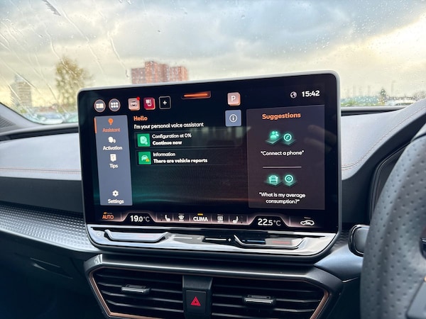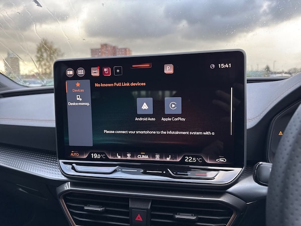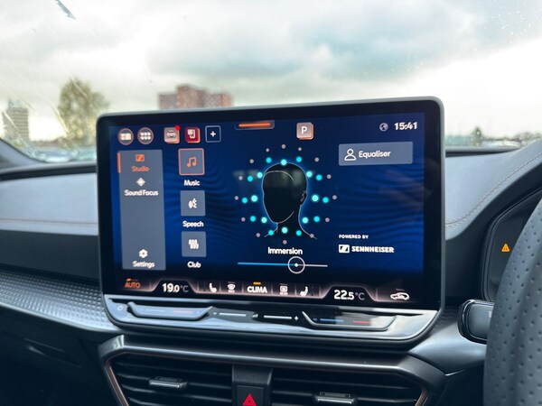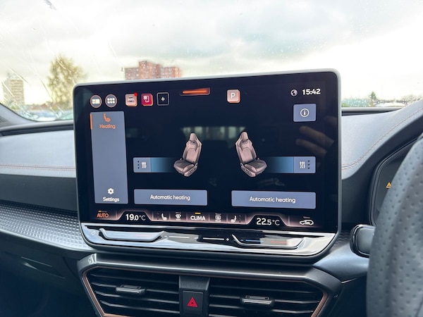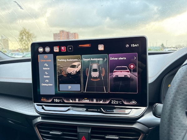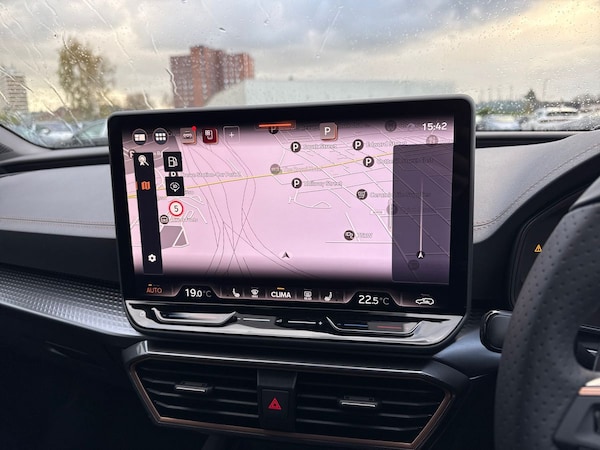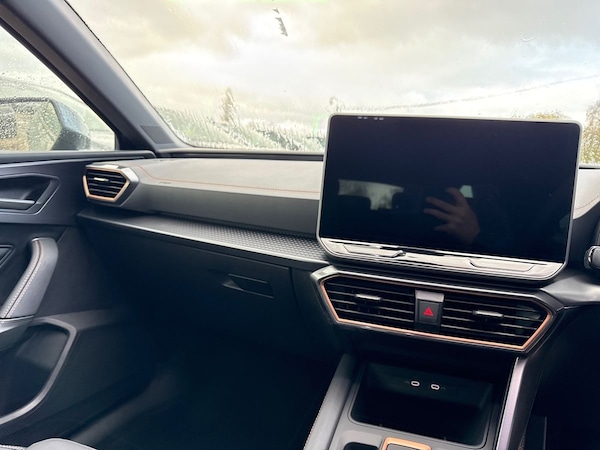 The CUPRA Leon 2.0 TSI VZ2 DSG Euro 6 (s/s) 5dr in striking Fiord Blue is a performance driven hatchback that pairs bold design with cutting edge technology. It rides on eye catching 19 inch Mistral machined alloy wheels in black and silver, complemented by CUPRAs signature black brake calipers and sports bumpers. Chrome and copper detailing throughout the car, along with dark tinted rear windows, gives the vehicle a distinctive, aggressive aesthetic. Driver-focused features include the CUPRA Drive Profile and Dynamic and Comfort Pack, along with a heated Supersports steering wheel complete with satellite buttons. The electrically adjustable drivers seat includes lumbar support and a memory function, while both front seats are heated for added comfort. Advanced driver assistance systems such as Adaptive Cruise Control with Follow-to-Stop and Lane Change Assist with Emergency Assist, High Beam Assist, and Matrix LED headlights ensure a safer and more relaxed drive. Infotainment is handled by the Media System Plus with navigation, supported by Full Link smartphone integration, a Sennheiser sound system, and wireless phone charging. KESSY Advanced enables keyless entry and start, while the rear view camera, front and rear parking sensors. This vehicle is compliant with the Ultra Low Emission Zone (ULEZ) standards! This is the Cash Price for the vehicle, Price shown is the Cash Price, no hidden T&Cs, If you require a finance Quote please contact a member of our team, Th...
