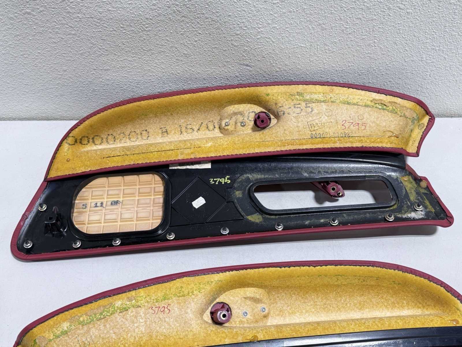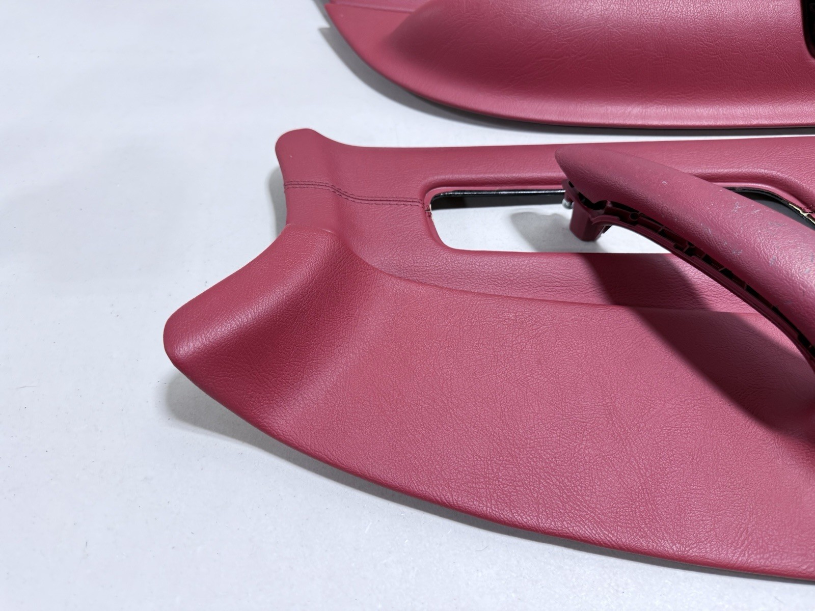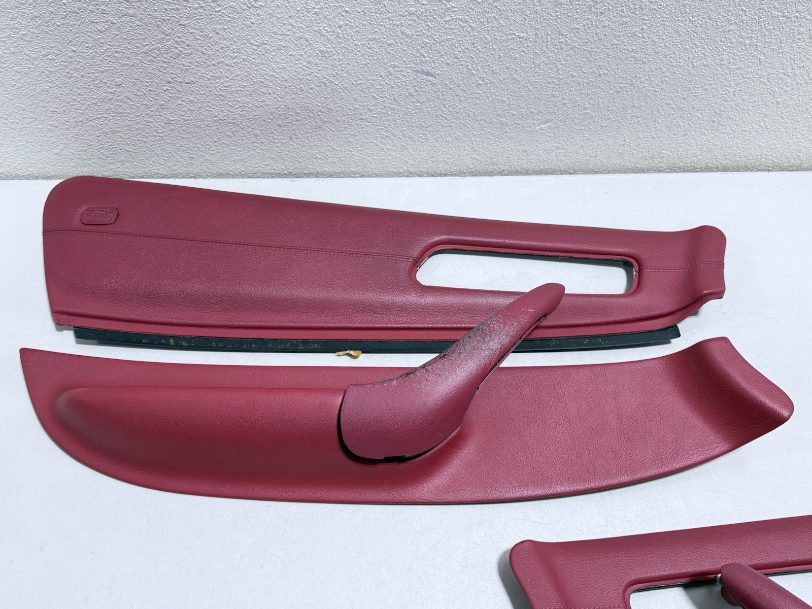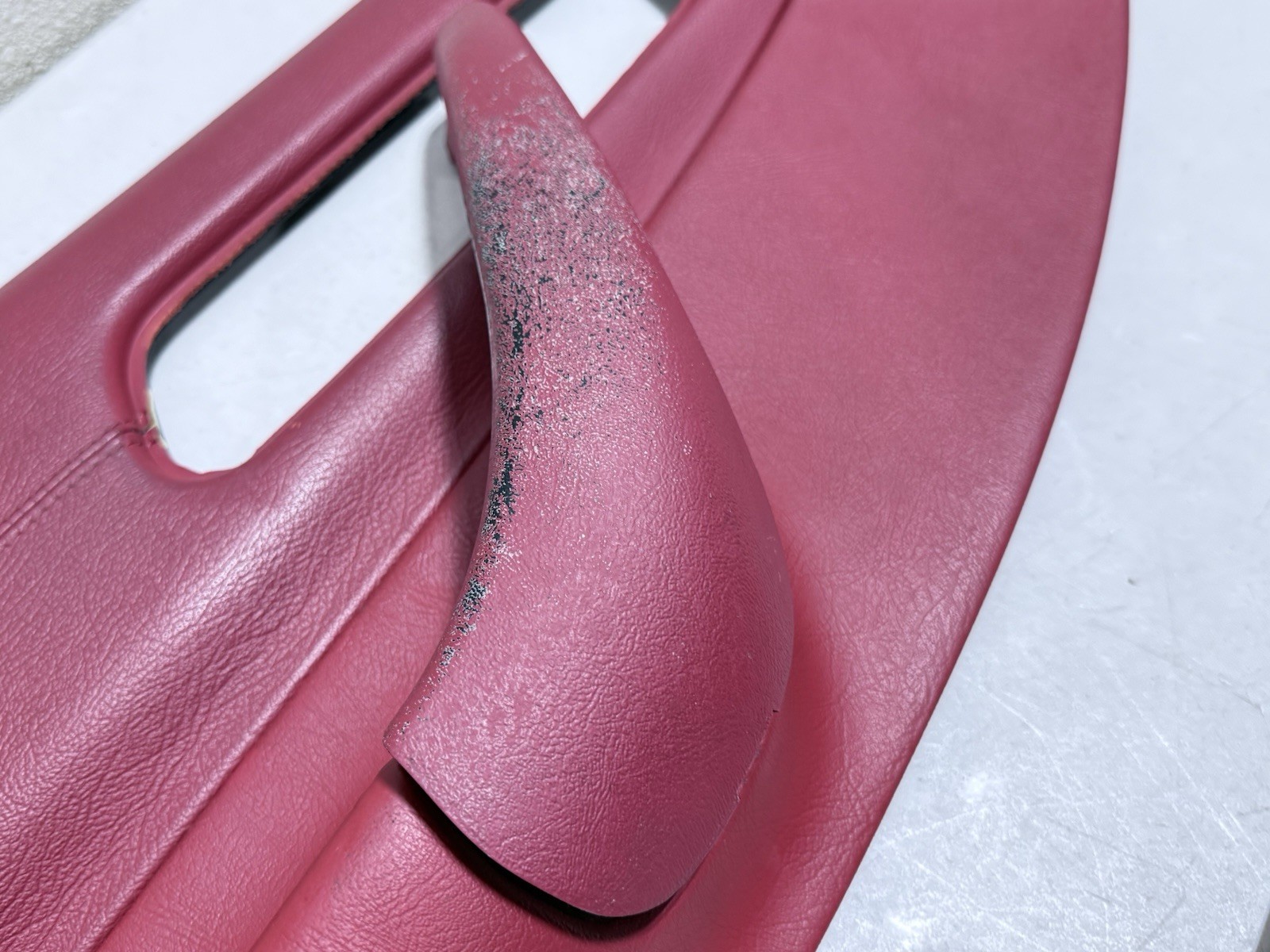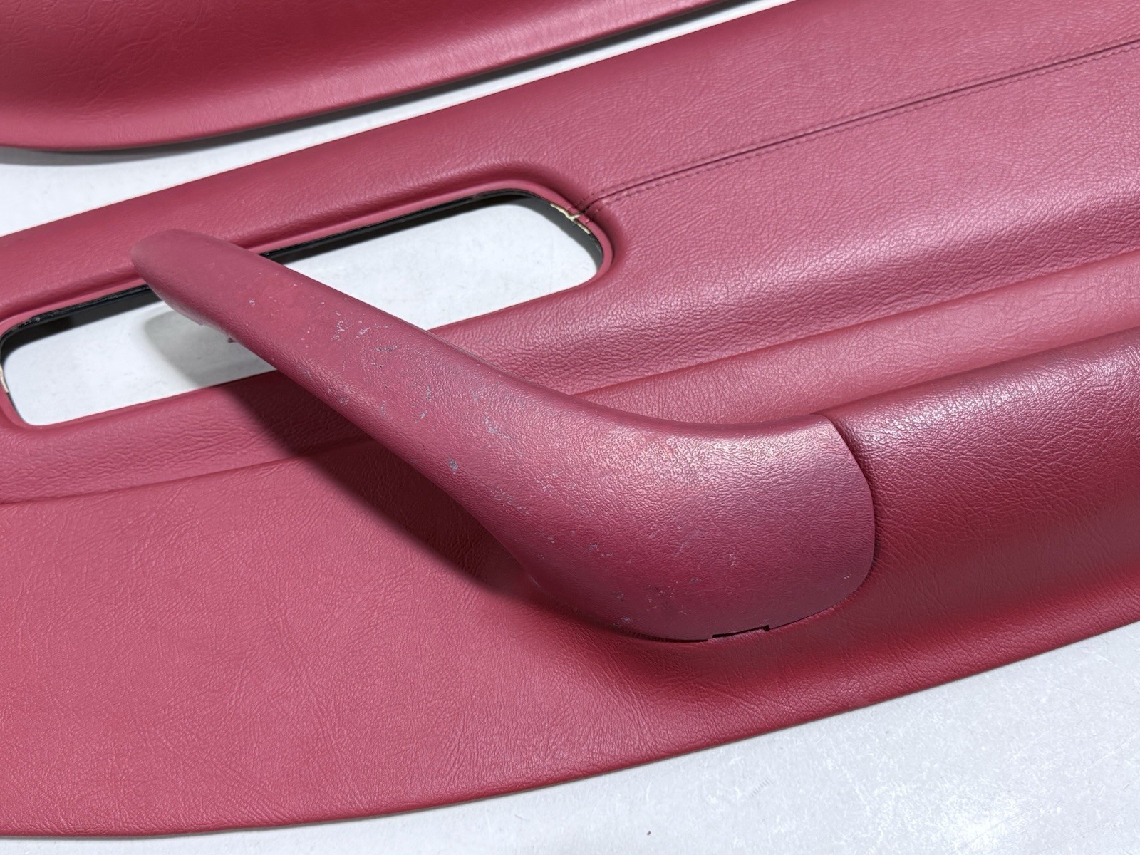 Panels are in fair shape, passenger side has some cuts at the elbow rest, driver side handle has a broken screw tab that’s screws in to the door handle housing (shown in photos) will still mount firmly as there is another screw that goes in to the door shell. Upper and lower panels need to be glued back together on both sides (left and right door)