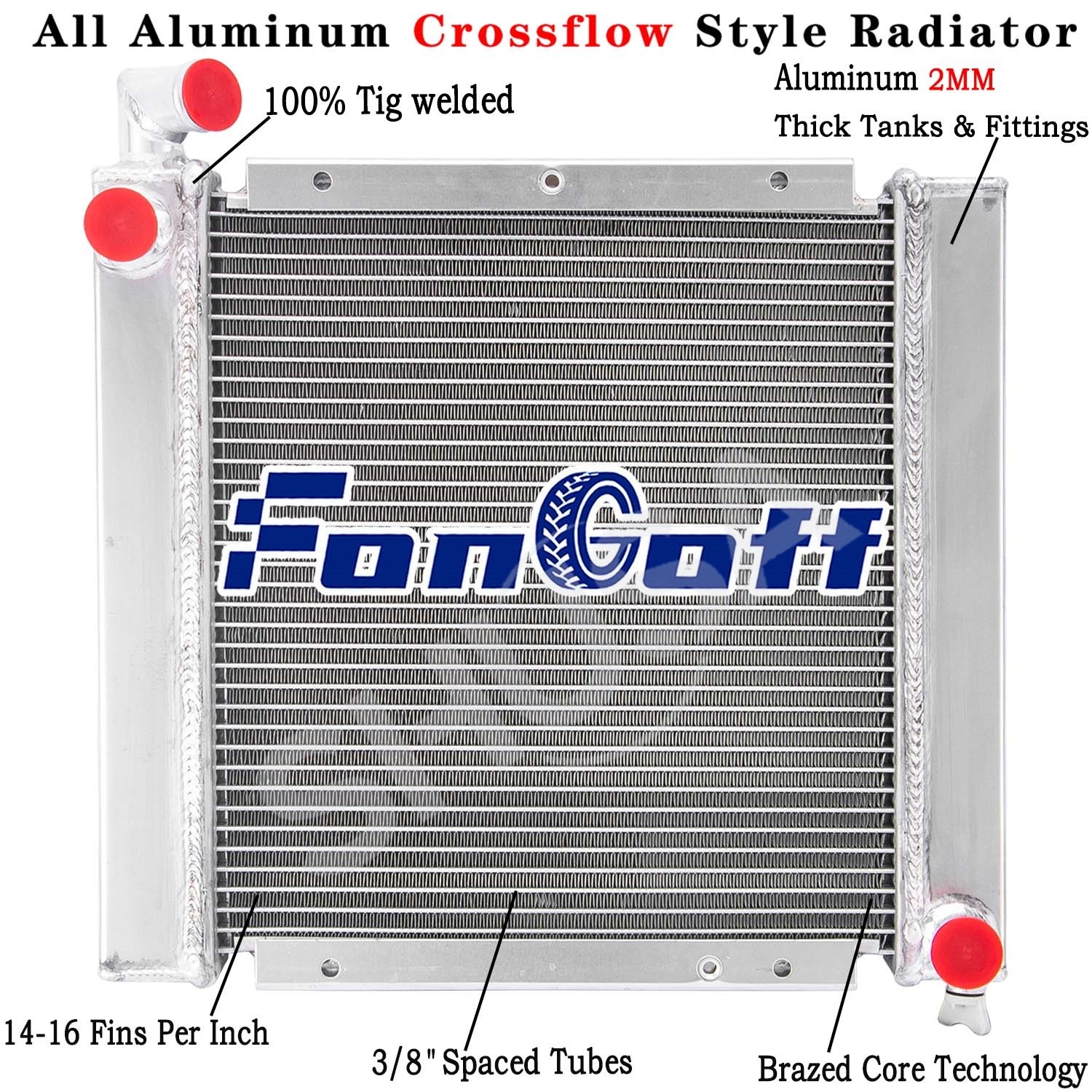 This aluminum radiator is designed to provide maximum cooling efficiency to prevent premature engine failure. Its light-weight, and high-heat transferring aluminum features a tube and fin design that, dramatically increases surface area that enables the heat to dissipate more efficiently. This Aluminum Radiator is at least 40% more efficient than stock ones. Most importantly, it has a much higher capacity for coolant than stock ones, which means that your cooling system will be more efficient and will be more resistant to temperature surges in racing applications.