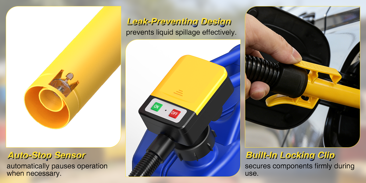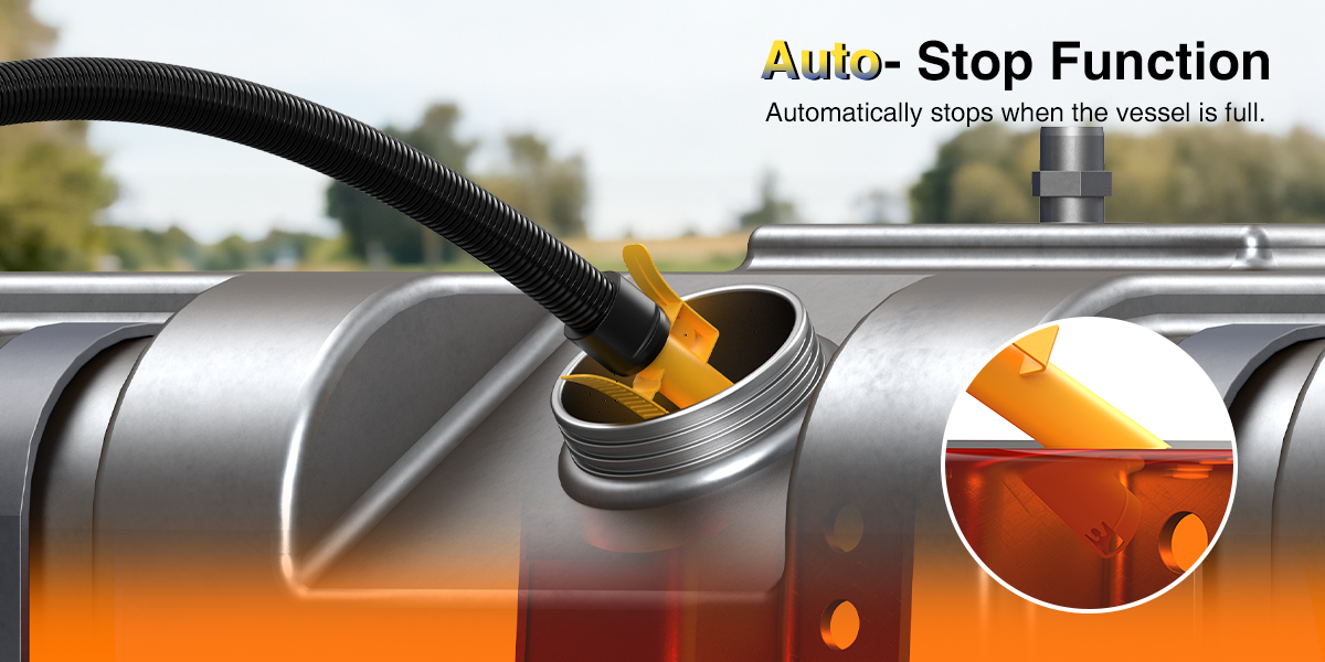 Der hochempfindliche Auto-Stop-Sensor stoppt den Kraftstofffluss sofort, wenn der Zieltank voll ist. Verhindert zuverlässig Leckagen und Überläufe – für maximale Sicherheit und Sauberkeit beim Betanken.