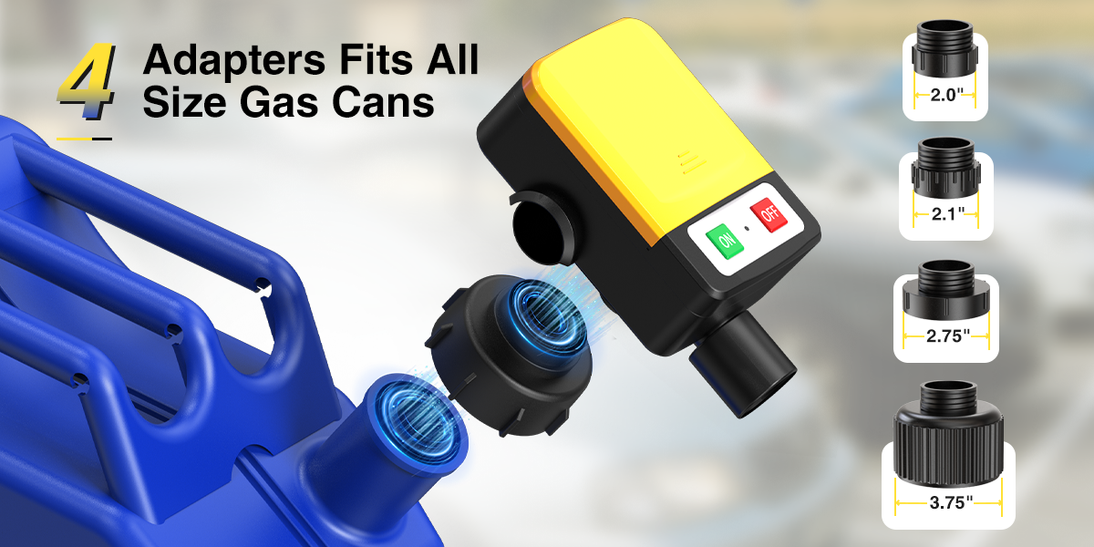 Enthält 4 praktische Adapter (2,0″, 2,1″, 2,75″, 3,75″) für die meisten europäischen Kraftstoffkanister. Der 130 cm (51″) extra-lange und flexible Schlauch gibt Ihnen die Reichweite und Bewegungsfreiheit, um bequem Autos, Motorräder, Boote oder landwirtschaftliche Geräte zu betanken.