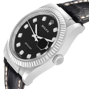 18K white gold oyster case 36.0 mm in diameter. Rolex logo on the crown. |