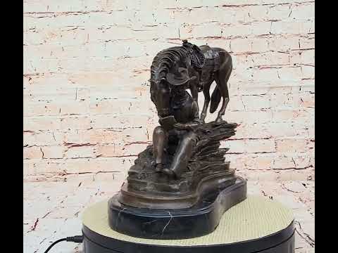 This exquisite bronze sculpture pays a heartfelt homage to the legendary Western artist, Frederic Remington, whose renowned works have captivated art enthusiasts and collectors worldwide. It beautifully encapsulates the profound connection between humanity and animals in the bygone era of the Old West.