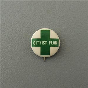 This listing is for a vintage CITYIST Plan cause pinback button. Approximately 1" diameter. 1940'1960's era. Union Label lightly stamped on back.