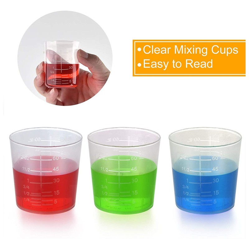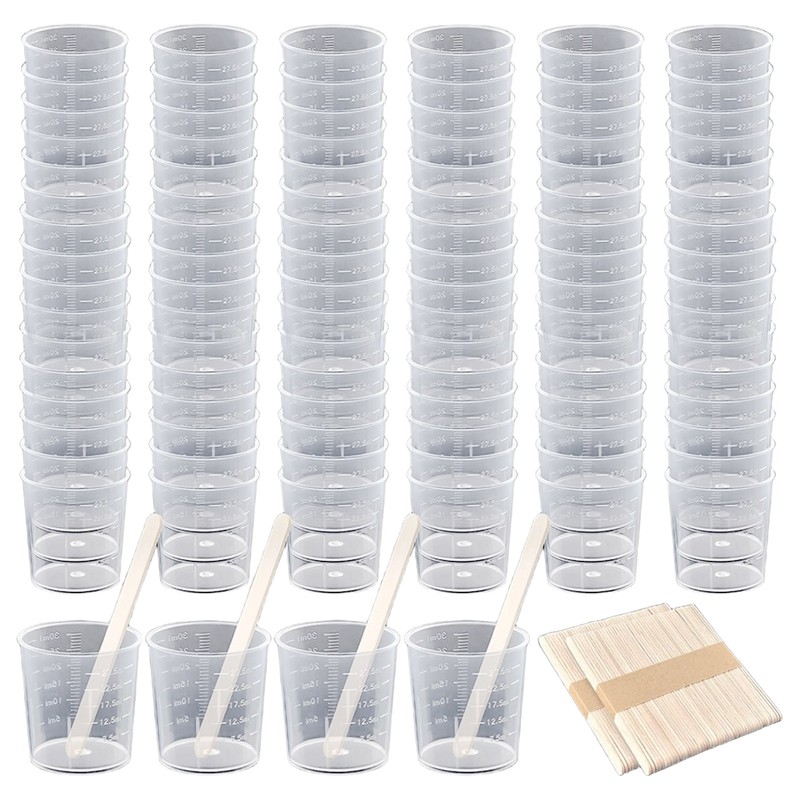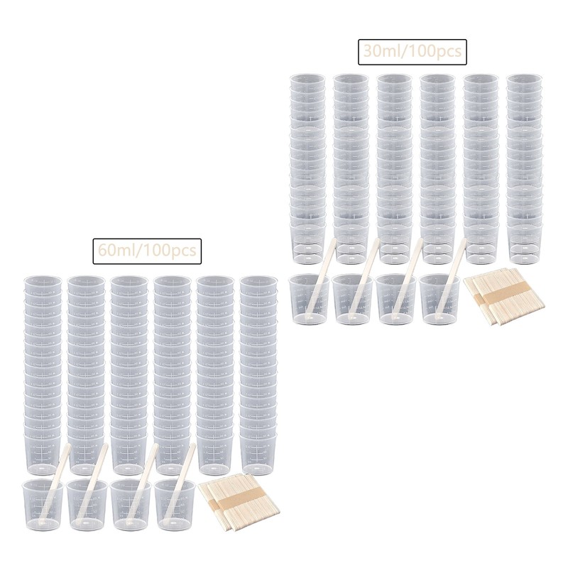 100Pcs Plastic Graduated Cups Scale Clear Epoxy Mixing Cup w/Stirring Sticks